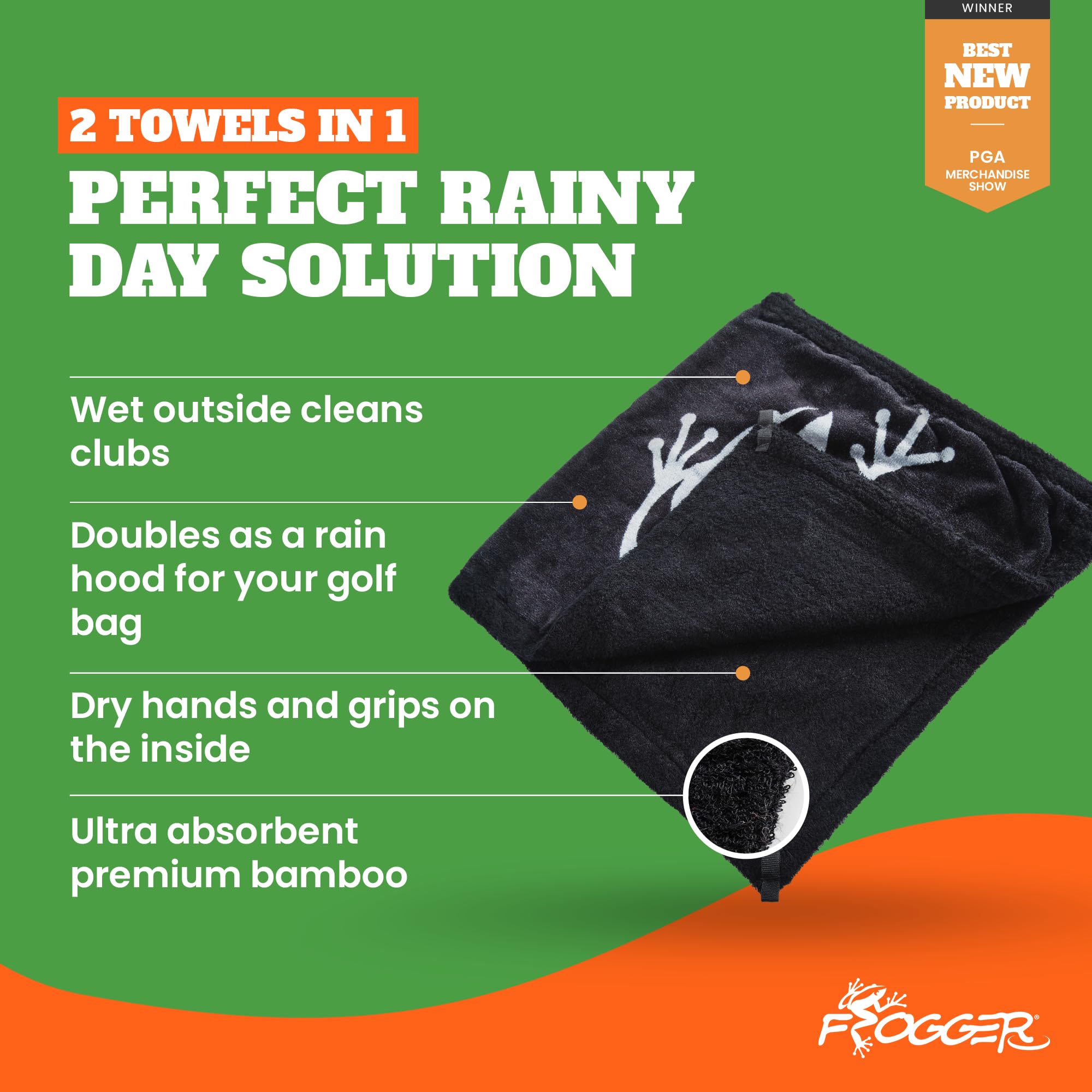• Convenient Design: Handy pull tabs make opening the dual folded layers a breeze, keeping your hands dry and allowing for quick access to your clubs. Frogger’s extra-large towel drapes over your golf clubs and golf bag, giving your gear an extra layer of protection when the rain comes