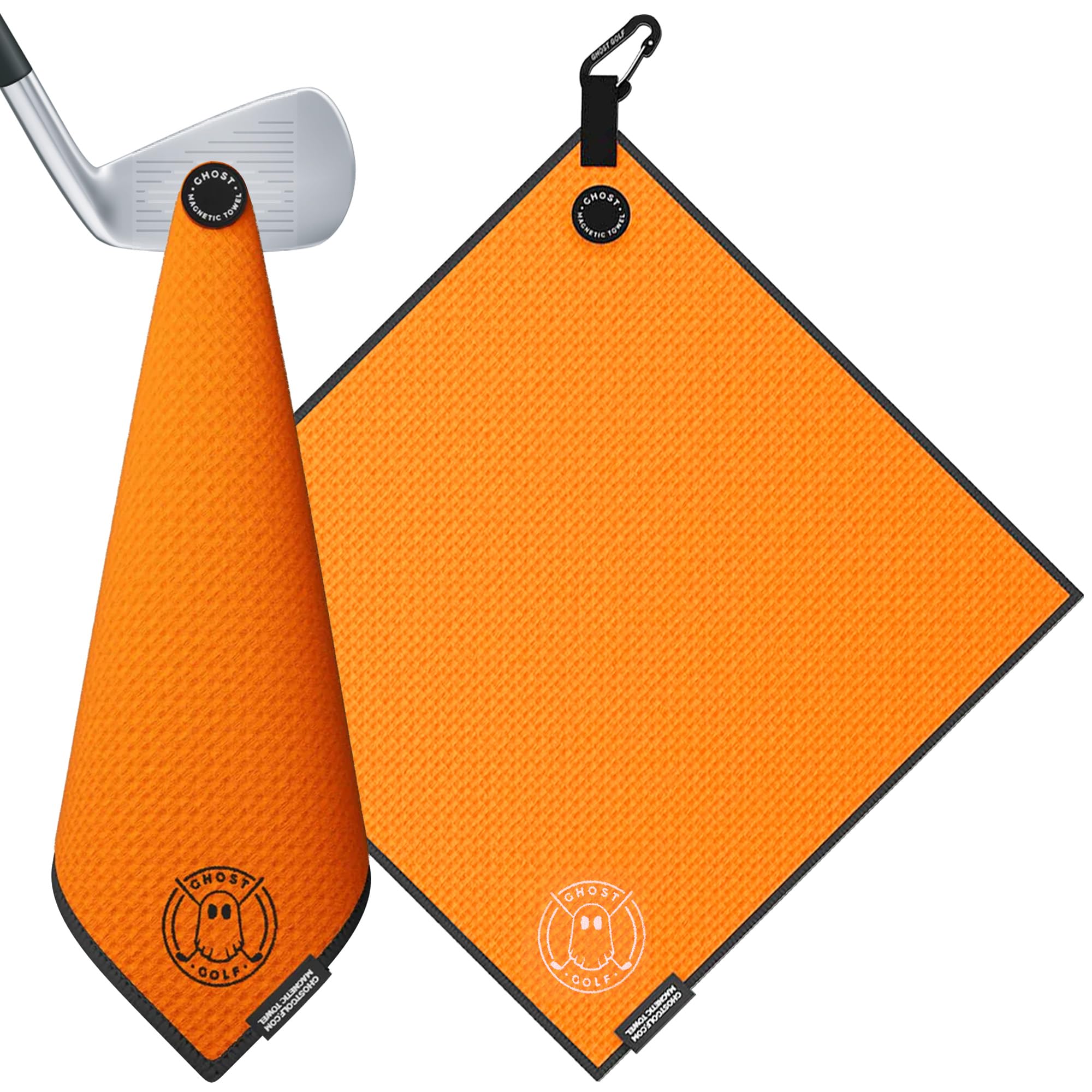 - Your New Sidekick on the Course: Say hello to the original Ghost Golf Magnetic Towel (Greenside), a game-changing towel that will elevate your golf game. Our patented design includes a powerful magnet that easily attaches to your golf cart or clubs so it’s always within reach. Color: Orange. Dimensions: 18” x 18”.