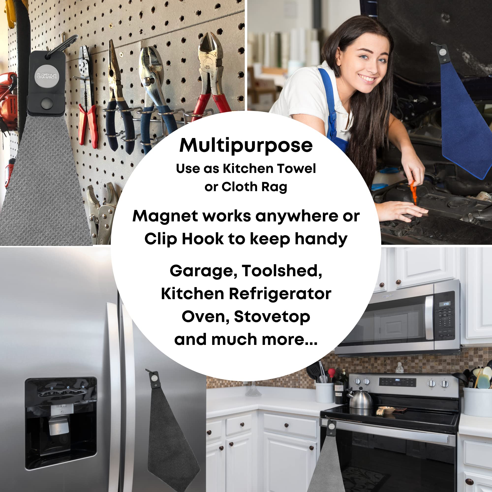 Details: Each towel has a carabiner hook fastener. Clip on to anything handy including golf bags, golf carts, pockets, belt loops. Super strong magnetic hold clip. Fast on-the-go convenience, always within reach, keep anywhere with the option for magnet or hook, oversized microfiber towel, hassle free pick up around the green. Easy stick to the club, convenience and ease. No more back bending. Keep clubs and balls clean from tee to green. All day enjoyment. Hook on golf bag, Special feature includes carabiner clip hook to attach towel to golf bag or belt loop. Stick to golf cart, strong magnetic hold on golf carts for easy grab or convenient club and ball cleaning. Convenient carabiner hook is always where you need it. Also, so convenient and easy to keep your golf clubs, golf balls or any golf accessories clean. These towels can even keep your hands, arms and palms dry. Drying clubs can help reduce the risk of rust building on your clubs. A dry wipe-down with a golf towel can also help improve your grip on the club. Easy attachment. Heavy duty carabiner clip ensures towel won't fall off and easily clips to many spots on your golf bag. Many golfers hang their towels on a ring near the top of their golf bag. Keep golf balls clean and rolling straight. Golf towel microfiber fabric is super absorbent, soft and lint free!