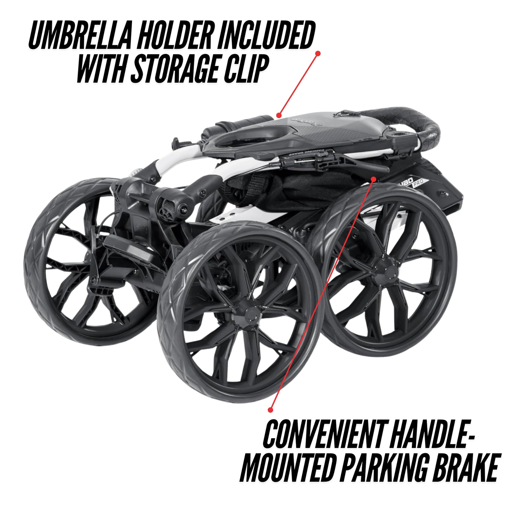 Details: The Quad Pro has been reengineered for ultimate convenience on the course. With a new iron plate mounted on the handle, you can easily keep your magnetic range finder or towel within reach. The refreshed frame gives the cart a more modern, updated look and folds smaller than the previous generation for better storage capabilities.