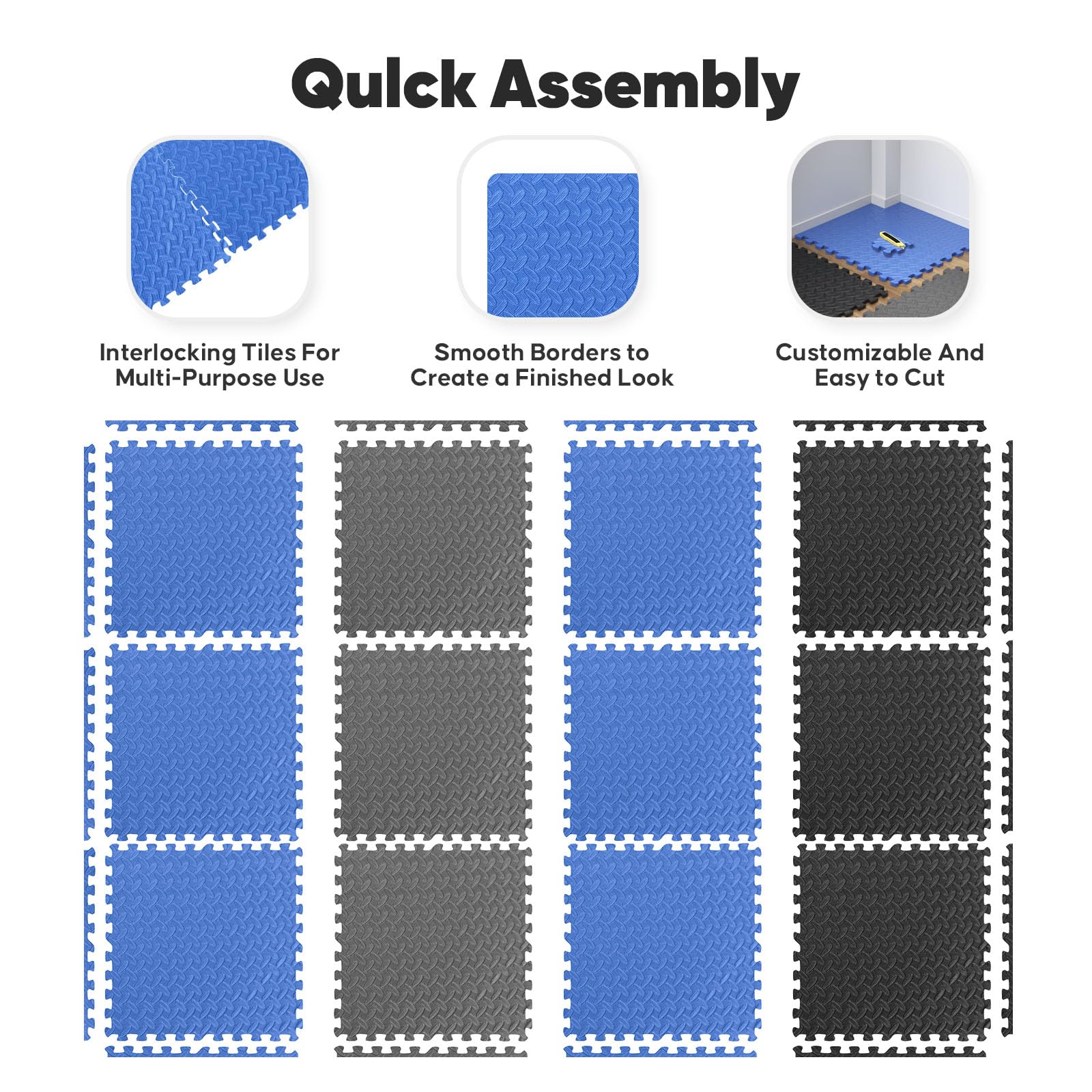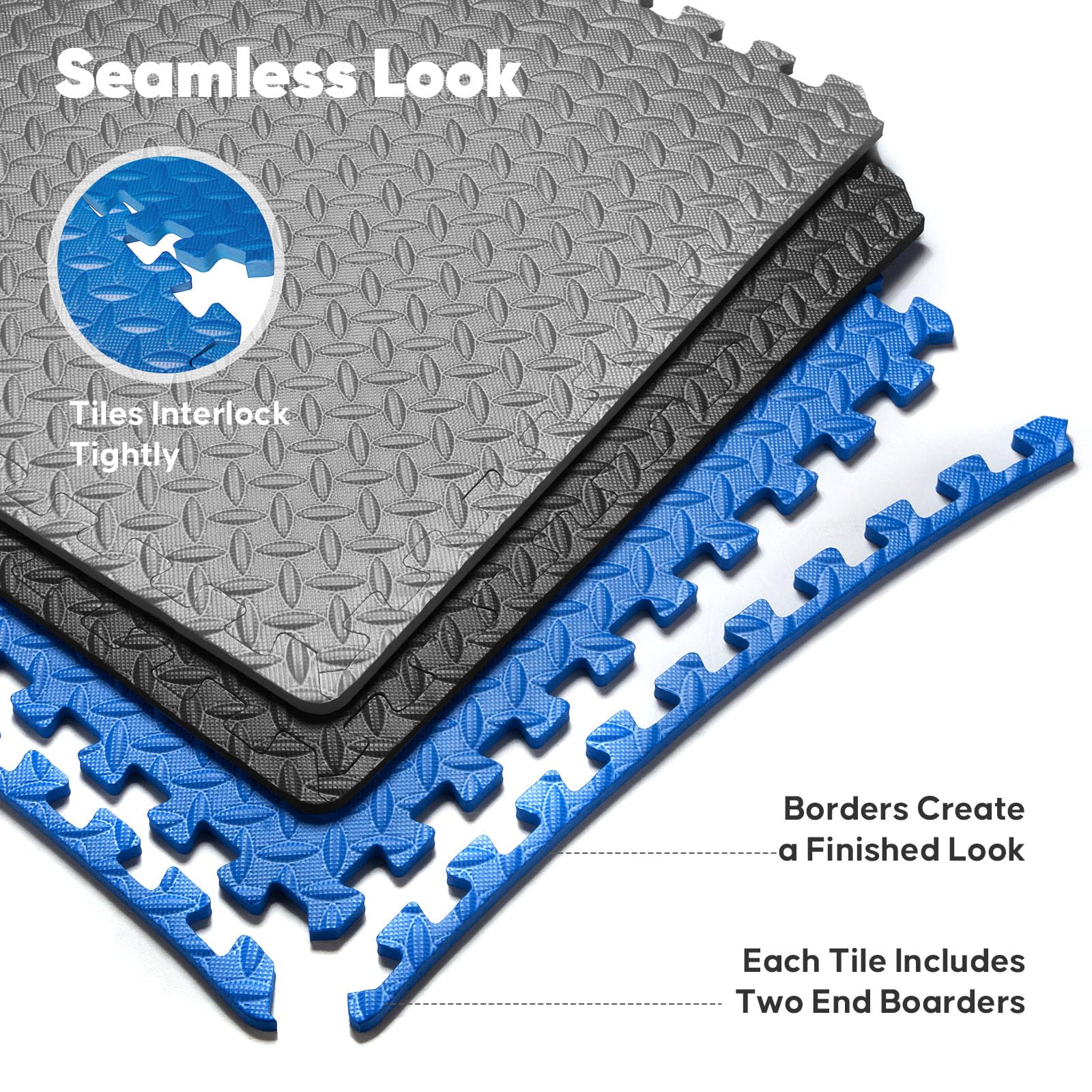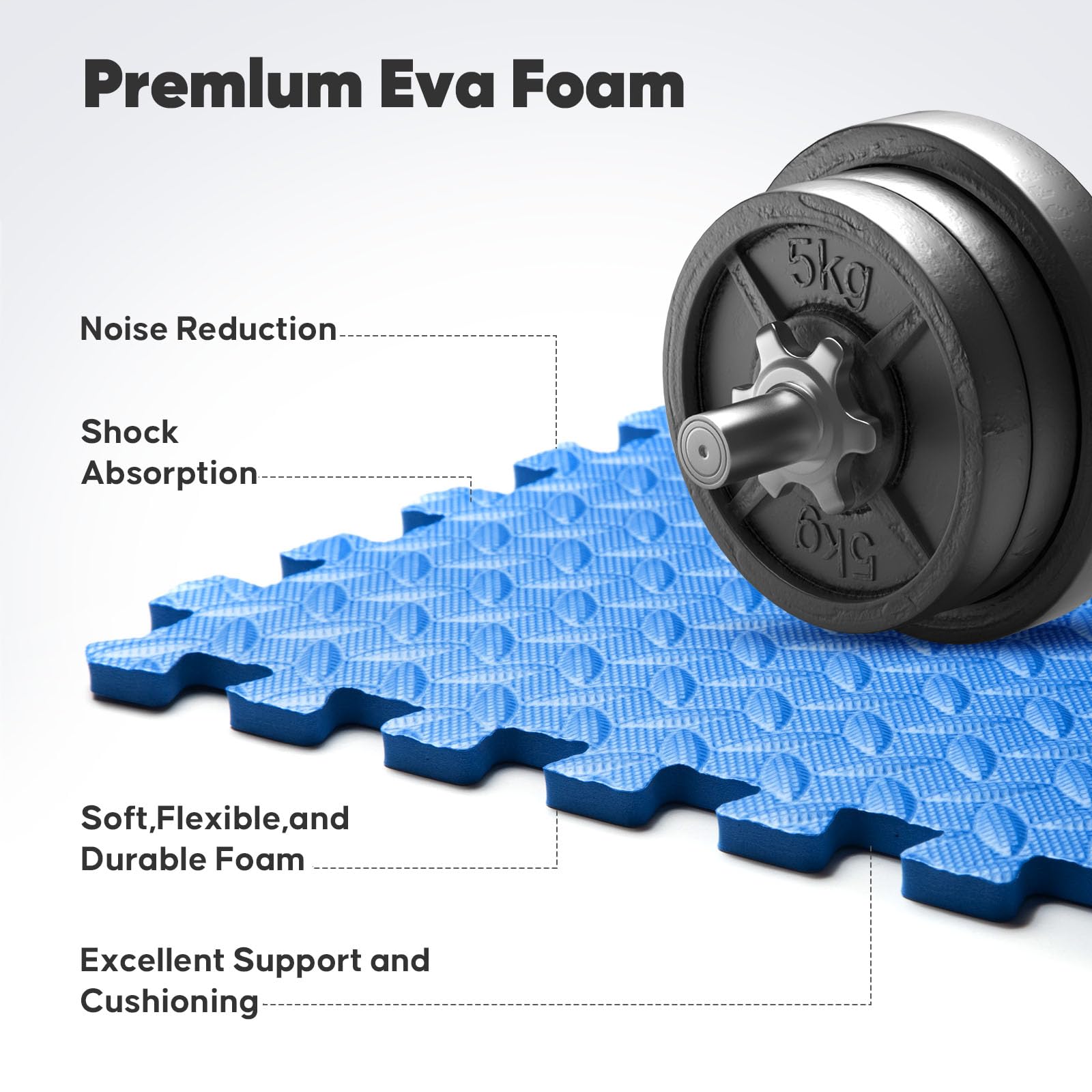 24 Pack - 1/2" Extra Thick Floor Exercise Mat for Home Gym Floor Padding for Kids - High-Density EVA Interlocking Foam Floor Tiles for Gym Equipment, Play Area, Yoga, Cardio, Weights, MMA