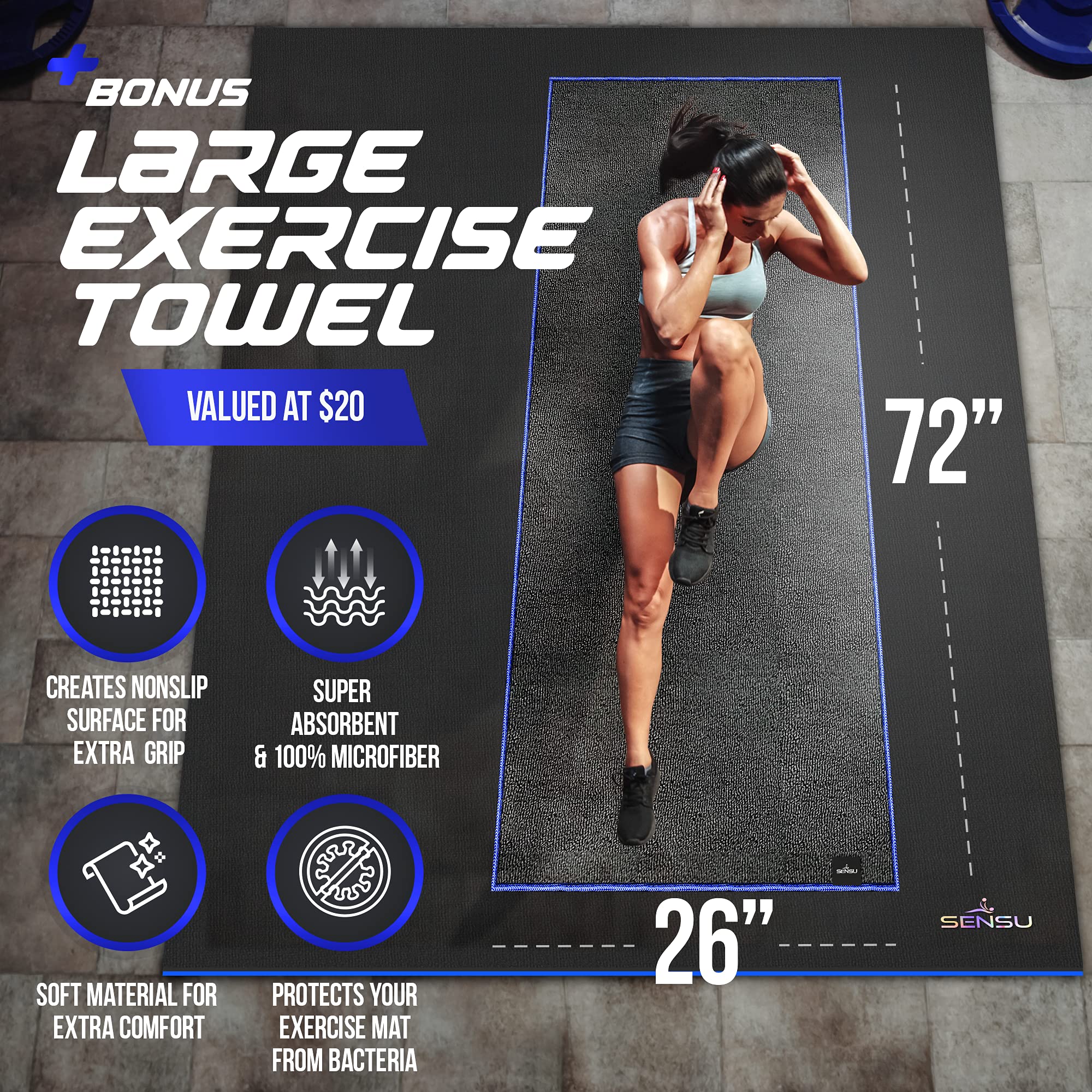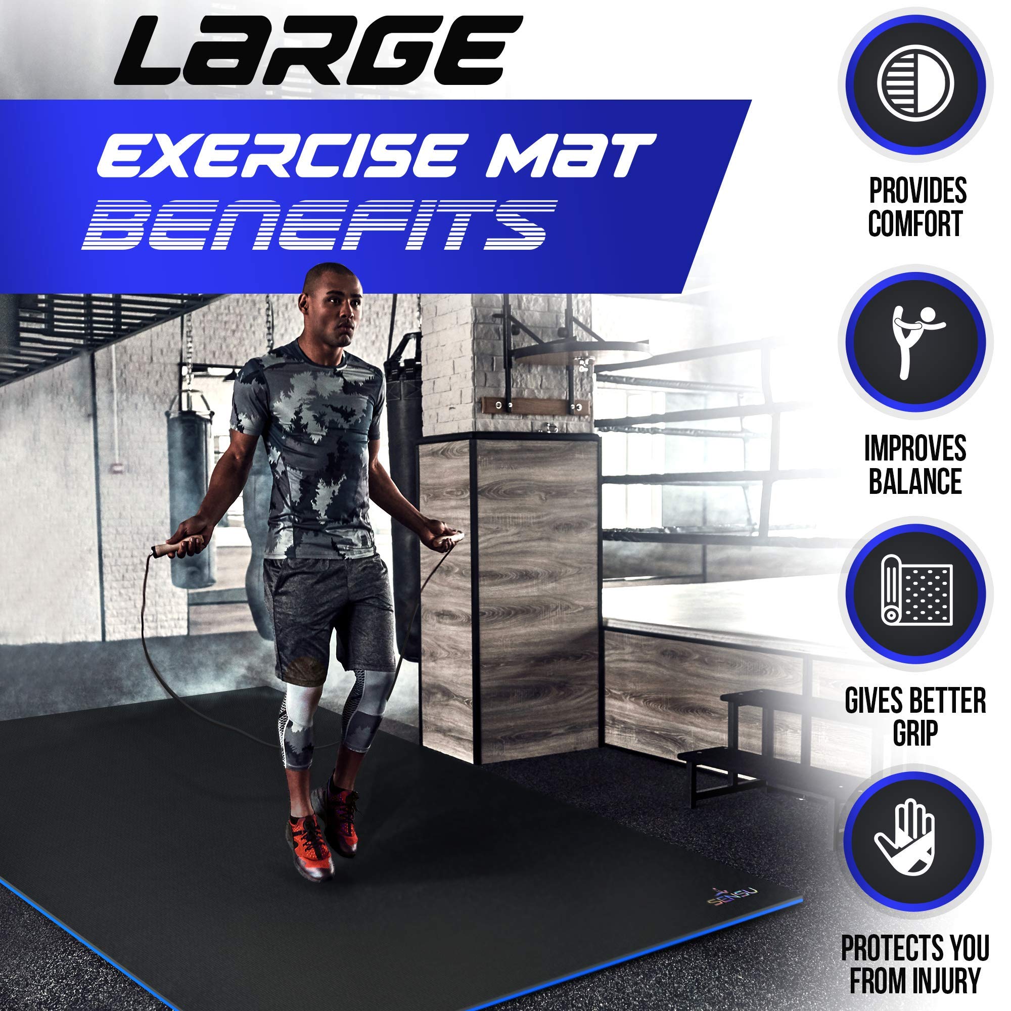 Sensu Large Exercise Mat – 7’ x 5’ x 8.5mm Extra Thick Workout Mats for Home Gym Flooring - Perfect for Jump Rope, Weights, Cardio and Fitness– Durable High Density Non-Slip Workout Mat- Shoe Friendly