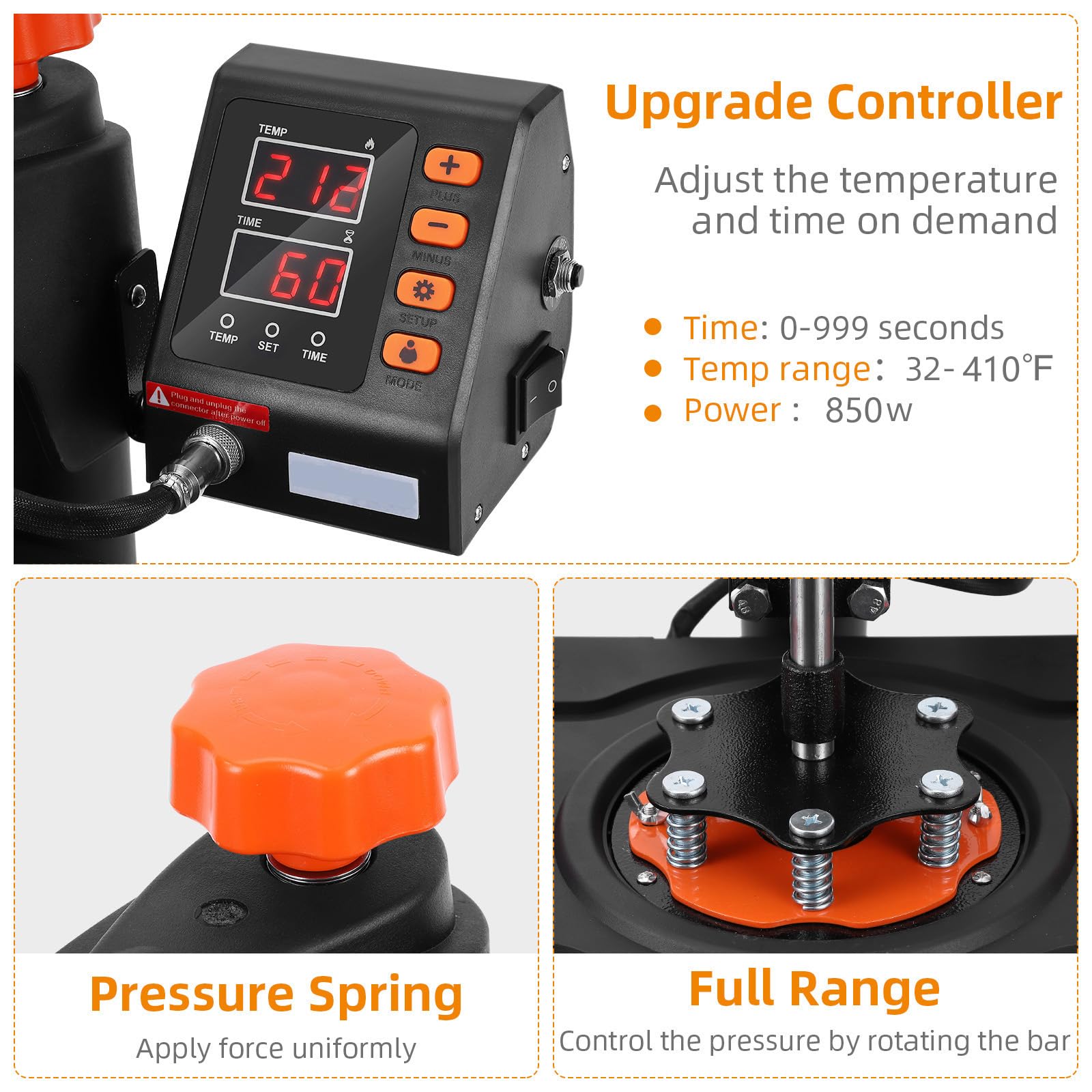 - Easy-Operating & Widely-Used -- Just place the item steady on the heating plate, set the proper temperature and time and wait until heating up, press the heating plate on the design and items, once ends with the countdown of the time, open it up and heating transfer has been done. This pressing machine can used for T-shirts, caps, ceramic plates, ceramic tiles, mugs, coasters, mouse pads, jigsaw puzzles, lettering, other misc. fabrics & materials.