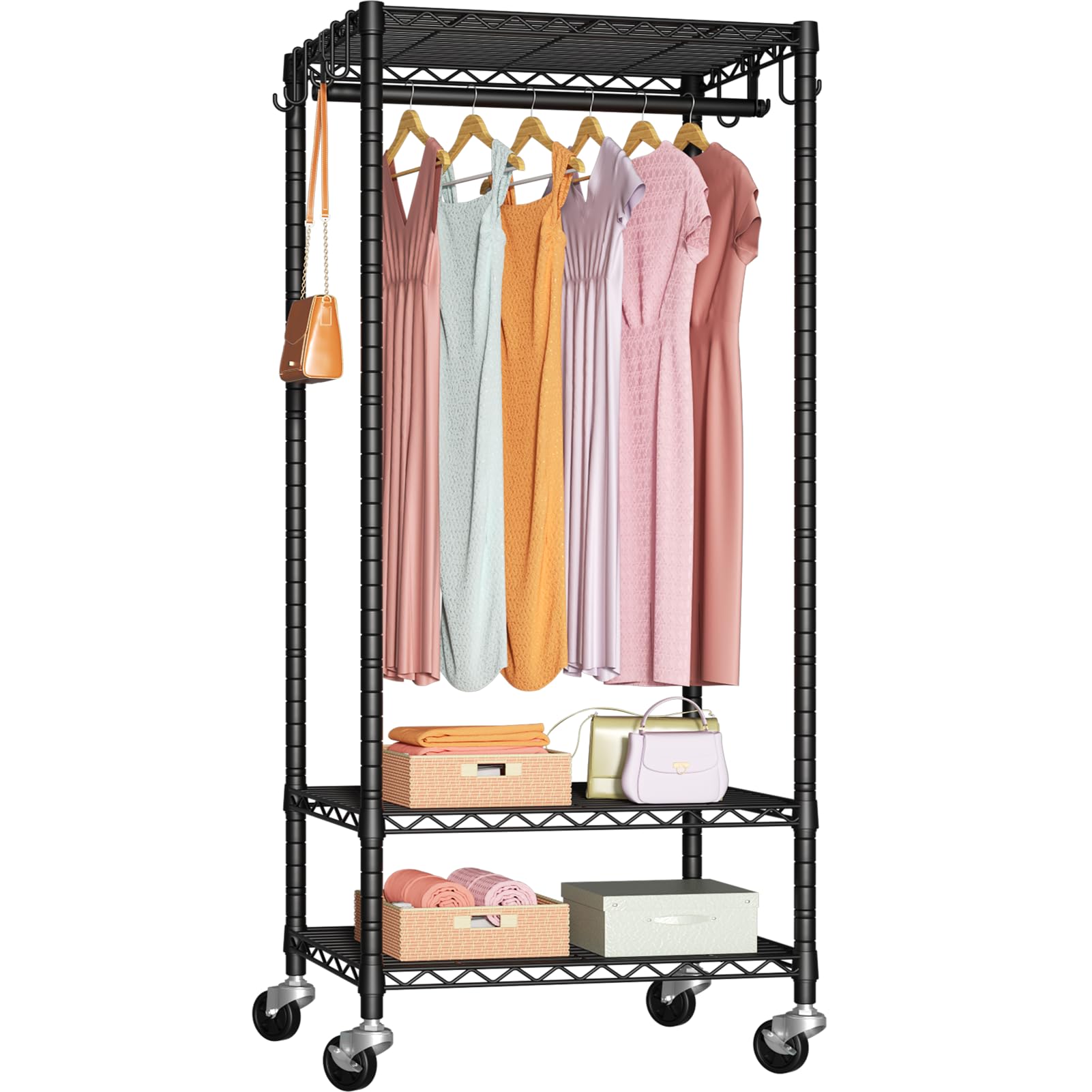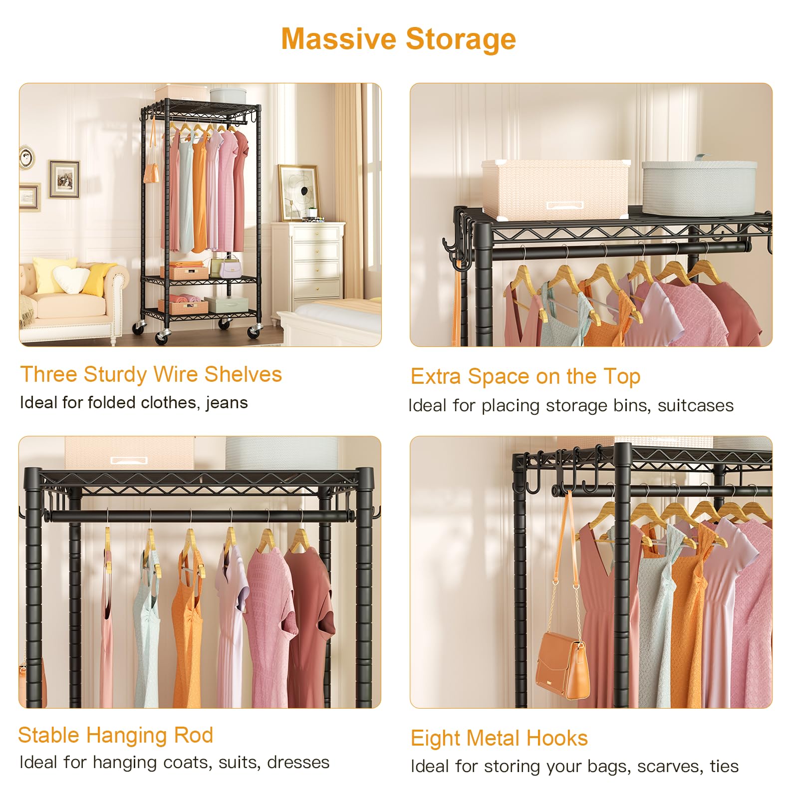 - 【Lockable 360° Wheels】The heavy-duty clothes rack features 4 casters, two lockable, allowing you to roll this portable clothes rack anywhere and securely lock to prevent slipping. Ideal for bedroom, cloakroom, laundry room, sewing area, clothing store, studio, and more