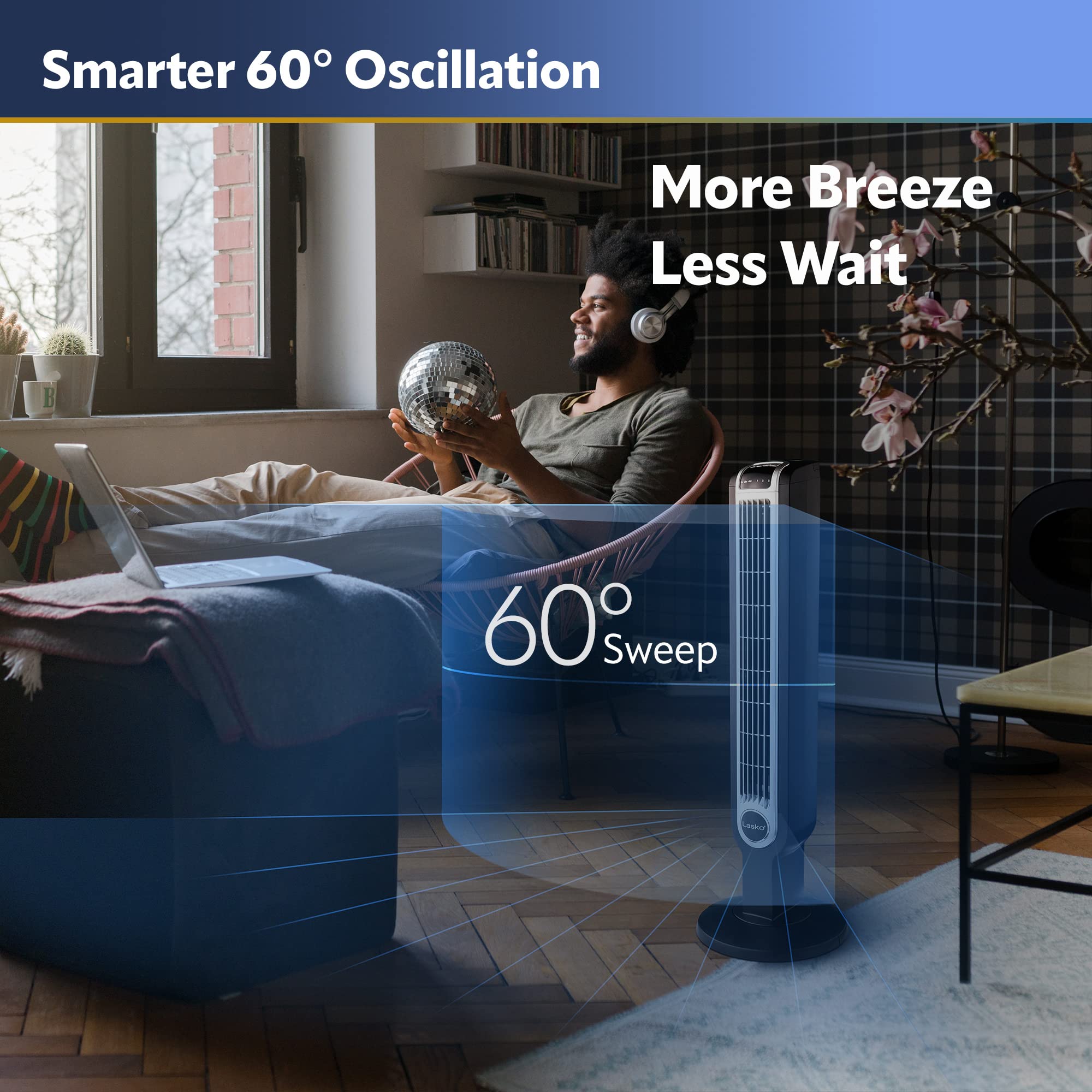 • Widespread Oscillation: Allows you to direct airflow where you need. Turn on oscillation and the fan will gently direct air side to side, allowing the air to distribute and cool the room.
