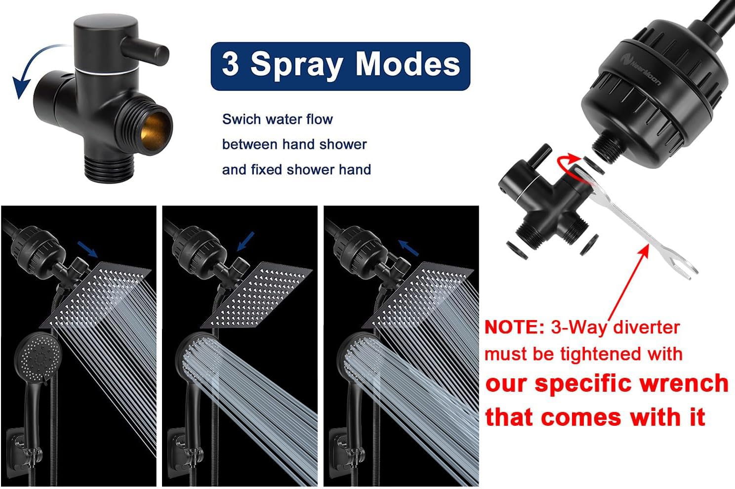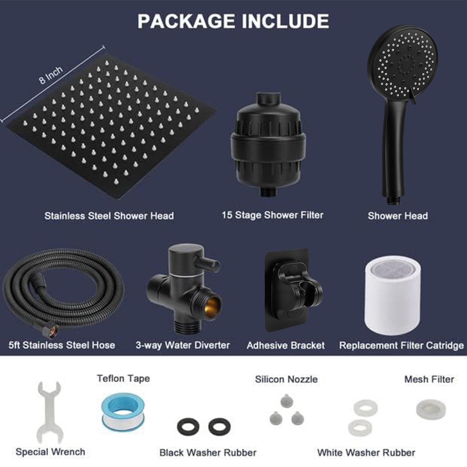 Elevate your bathroom oasis with the NearMoon Filtered High Pressure 8"Square Shower Head Filter Combo. This must-have set features a handheld shower filter with 5 settings for ultimate customization. The self-adhesive holder and 1.5M hose make installation a breeze, while the Matte Black finish adds a touch of modern luxury to your space. Experience the difference with clean, filtered water and enjoy a high-pressure shower experience like never before.