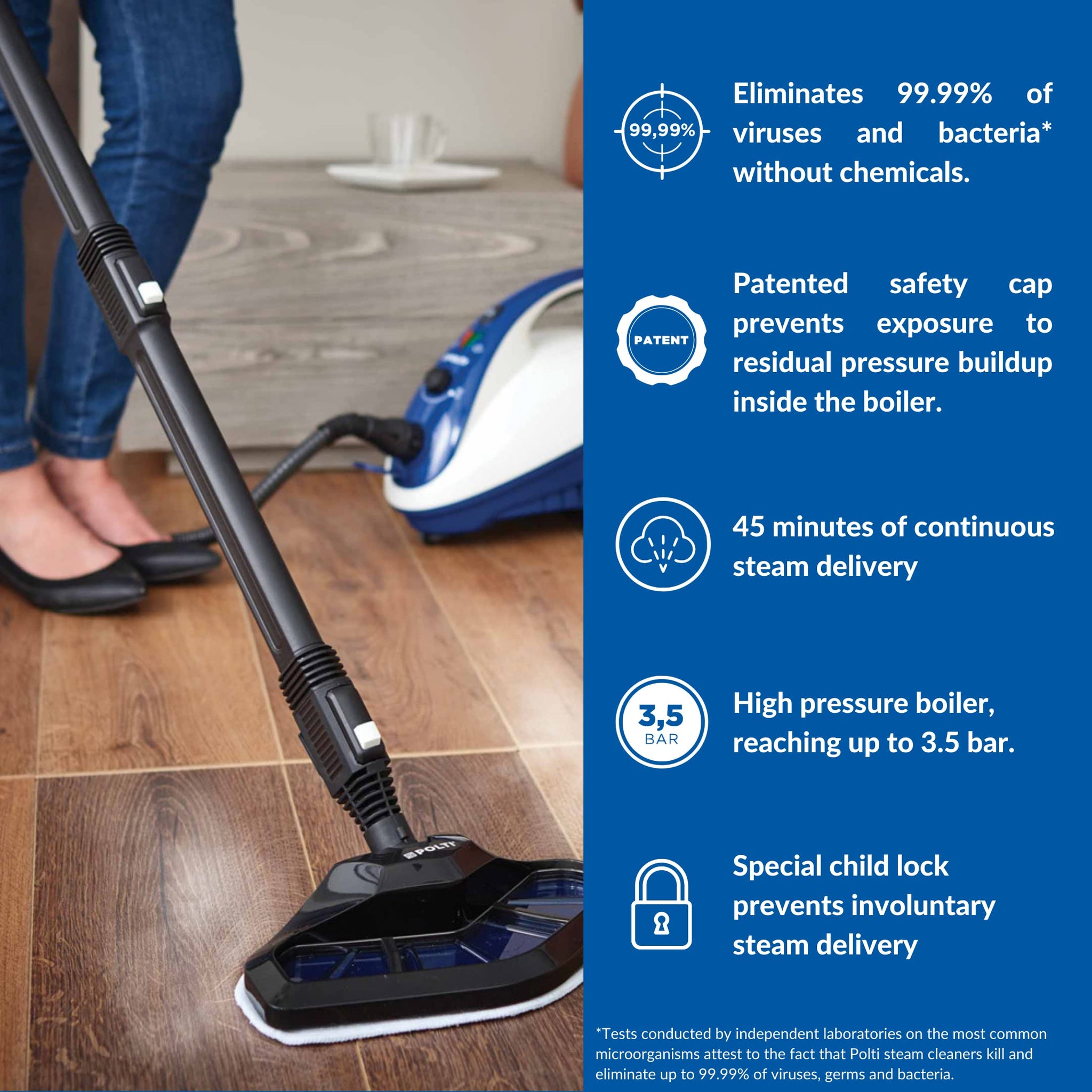 - CHEMICAL FREE CLEANING: Say goodbye to harsh chemicals and hello to the power of pressurized sanitizing steam with the POLTI Steam Cleaner. It offers a chemical-free cleaning alternative that is not only effective but also promotes a safer and healthier living environment.