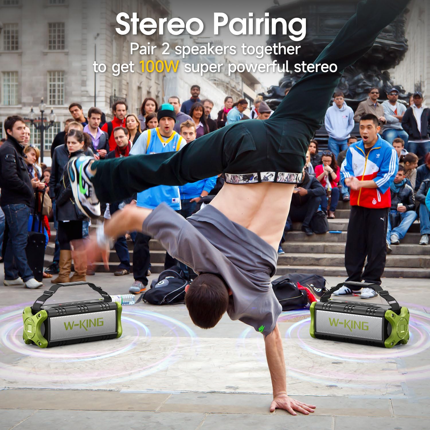 - 180W PEAK(100W) Powerful Beast Sound: Easily pair two portable speakers bluetooth wireless loud, upgrading 180W MAX stereo surround sound immediately. The Outdoor bluetooth speakers wireless bring vivid sound to life for a fantastically dynamic Audio experience. When you listen to music, watch movies, or play games, the two portable bluetooth speakers creating two-channel sound immediately bring you extraordinary clarity and detail. Take the loud bluetooth speaker for movie, Christmas party, gym, camping, BBQ,travel essentials,pool party!