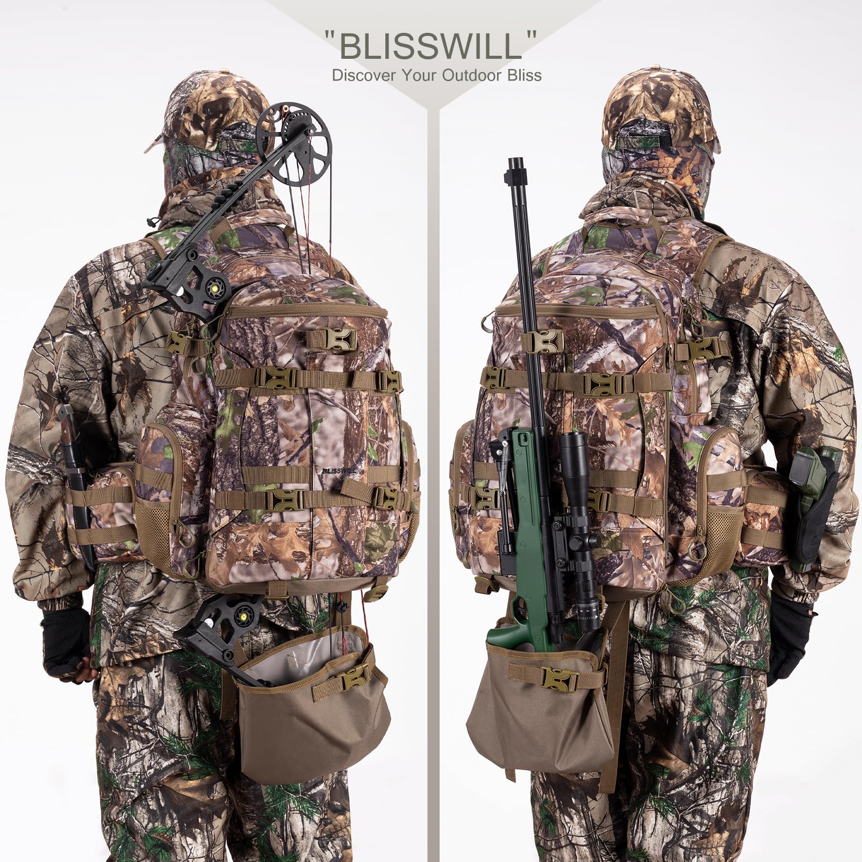 Wild Cedar Camo Bow Hunting Backpack for Men, Saddle Hunting Backpack with Bow Holder, Compound Bow Hunting Bag for Deer and Elk Hunting