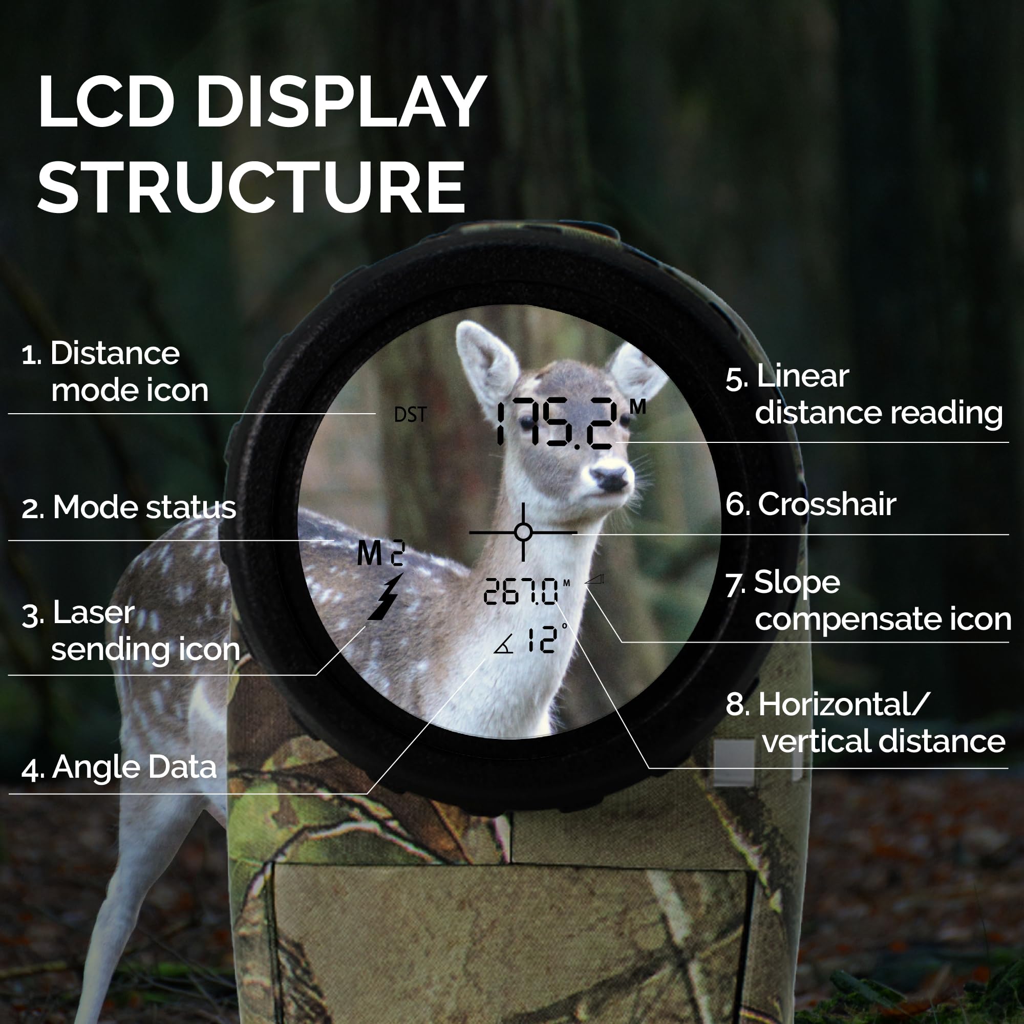 • FRIENDLY USE DISTANCE RANGEFINDER: Super easy for anyone to use. You can switch between meters and yards at will. Single-point the "MODE" button to switch the M1 mode and M2 mode at will. If the view is not clear, please try to twist the focus ring to adjust the focus of the rangefinder. It is very suitable for all hunting enthusiasts.