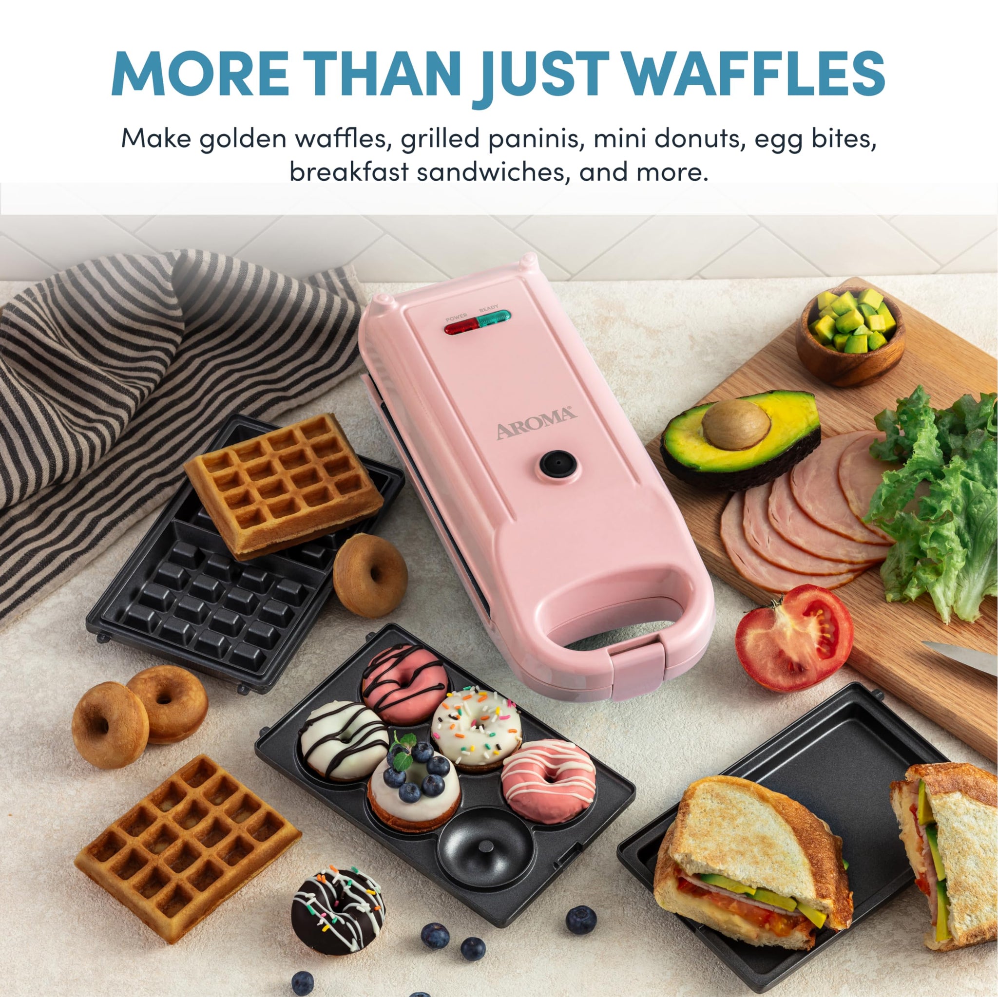- MAKES TWO: Make a full breakfast in every batch. Unlike most mini waffle makers, Aroma’s double waffle iron cooks fast and makes 2 waffles (or a panini!) at once.
