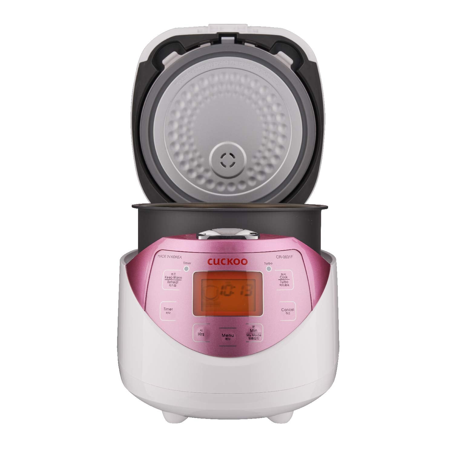 Details: Embark on a Culinary Adventure with CUCKOO's CR-0631F 6-Cup Micom Rice Cooker! With a generous serving amount of 12-cup cooked capacity and simple controls, CUCKOO's 6-Cup Micom Rice cooker is ideal for large families and those looking to elevate their cooking experience. Key Features: Multi-Functional Cooking: 7 menu options including white (glutinous) rice, mixed rice, baby food, soup, and even a Turbo Mode that brings fresh white rice under 35 minutes bring cooking ideas to life. 12-Cup Cooked Capacity: The 6-cup (12 cups cooked) rice cooker offers the ideal serving size for small gatherings or small to medium-sized families. Smart Automated Technology: The included My Mode and Fuzzy Logic Technology automatically detects the grain type and customizes the desired texture and flavor of your cooked rice and grains. High-Quality Construction: The durable nonstick inner pot and user-friendly digital touch controls ensure easy usage and to last through consistent use. Hassle-Free Cleaning: With a detachable inner lid, cleaning is made effortless to ensure quality rice after each use. Don't wait and grab CUCKOO's 6-Cup Micom Rice Cooker to bring your culinary dreams to life!