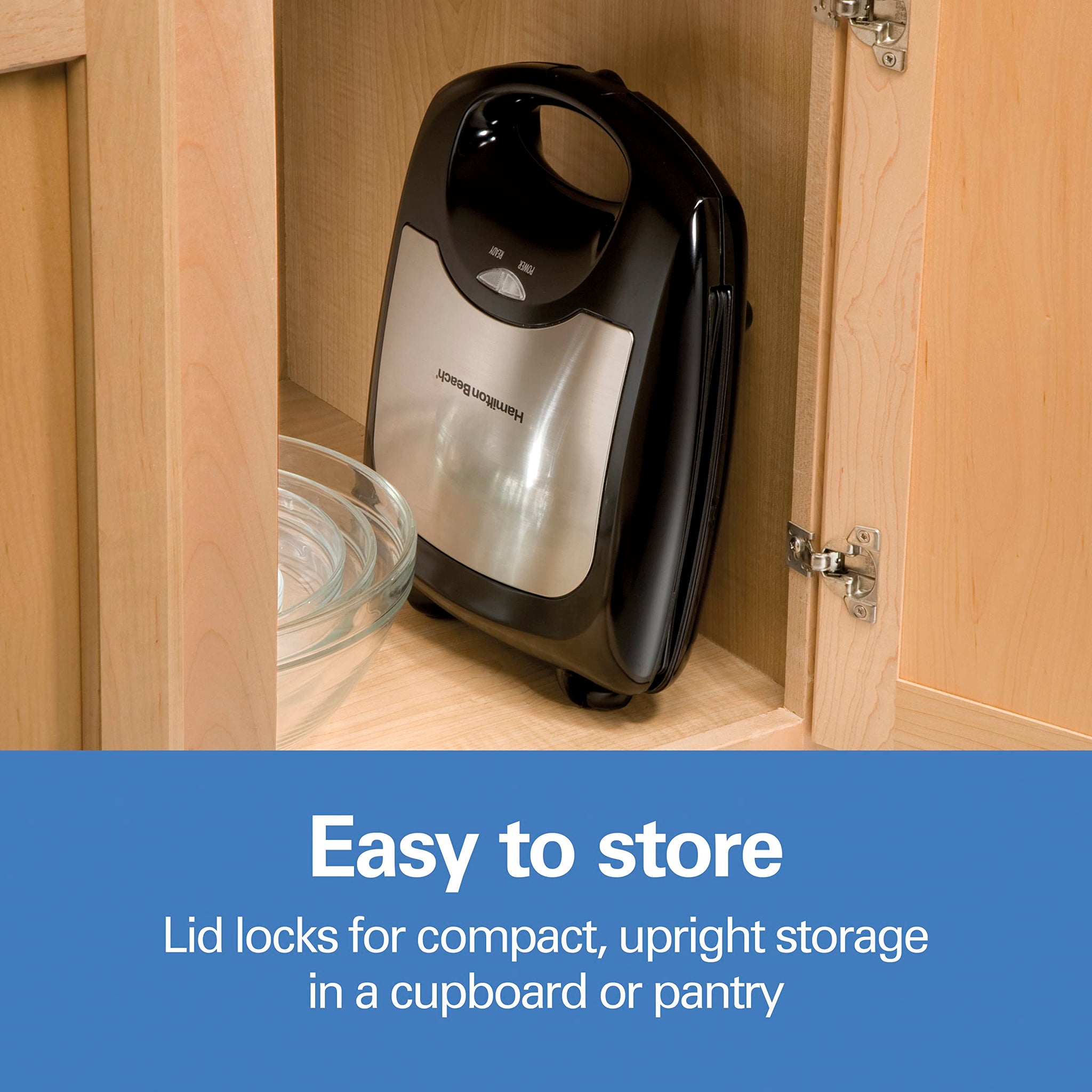 - EASY TO CLEAN: Food won't stick to the nonstick grids on the Belgian waffle maker, and a covered hinge and a batter channel help prevent messy spills