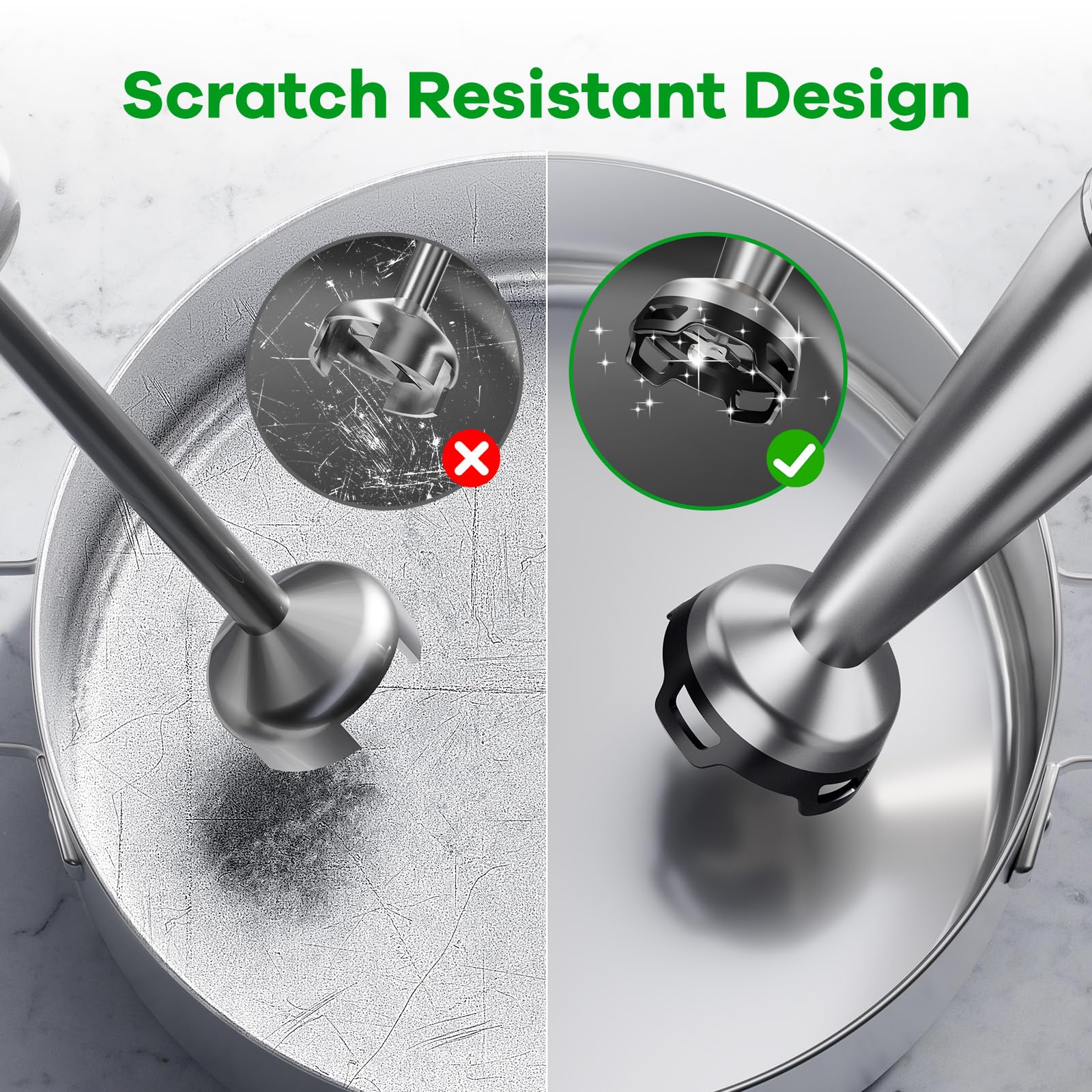 - Effortless Clean-Up, Scratch-Free: Features a unique food-grade nylon blade guard designed to minimize suction, preventing scratches on your pots and pans and keeping splashes at bay for a cleaner kitchen and hassle-free clean-up