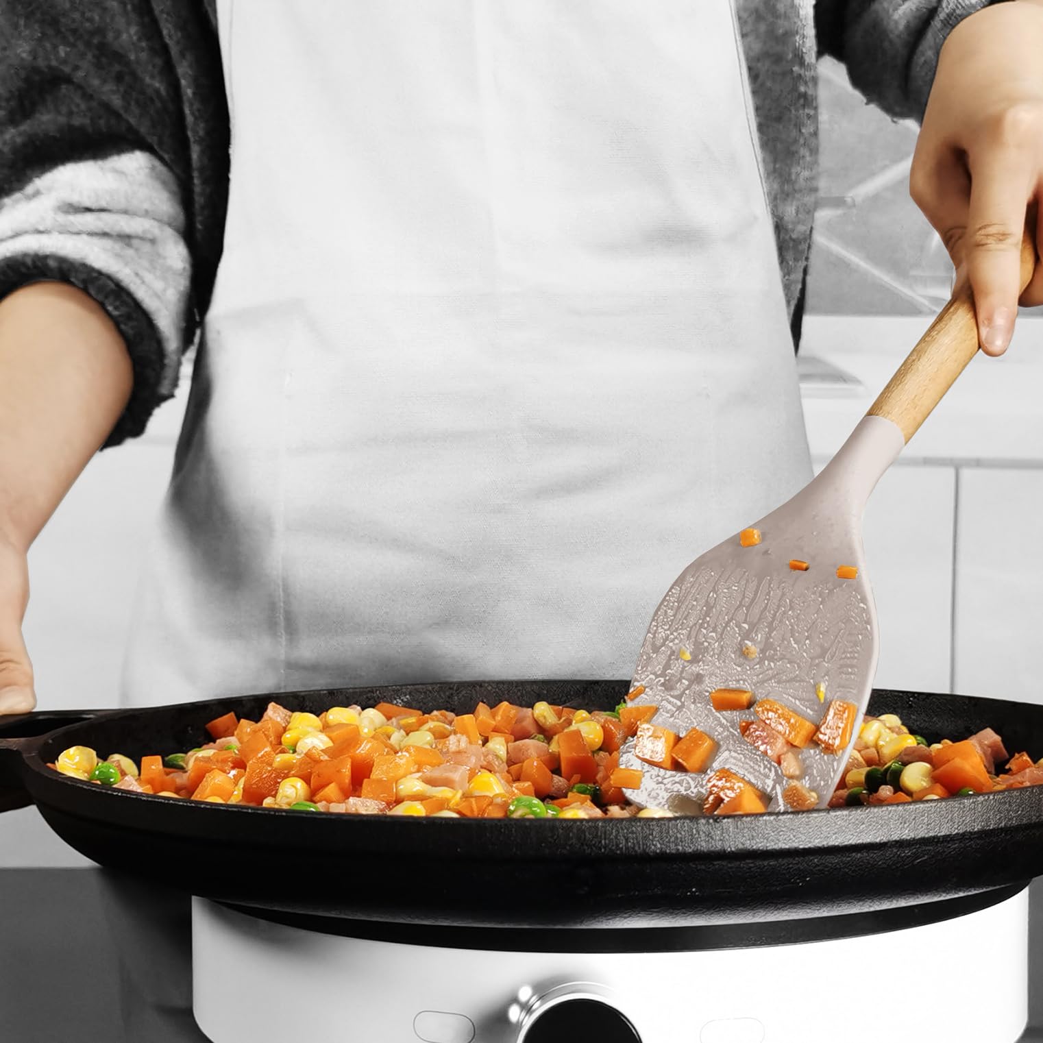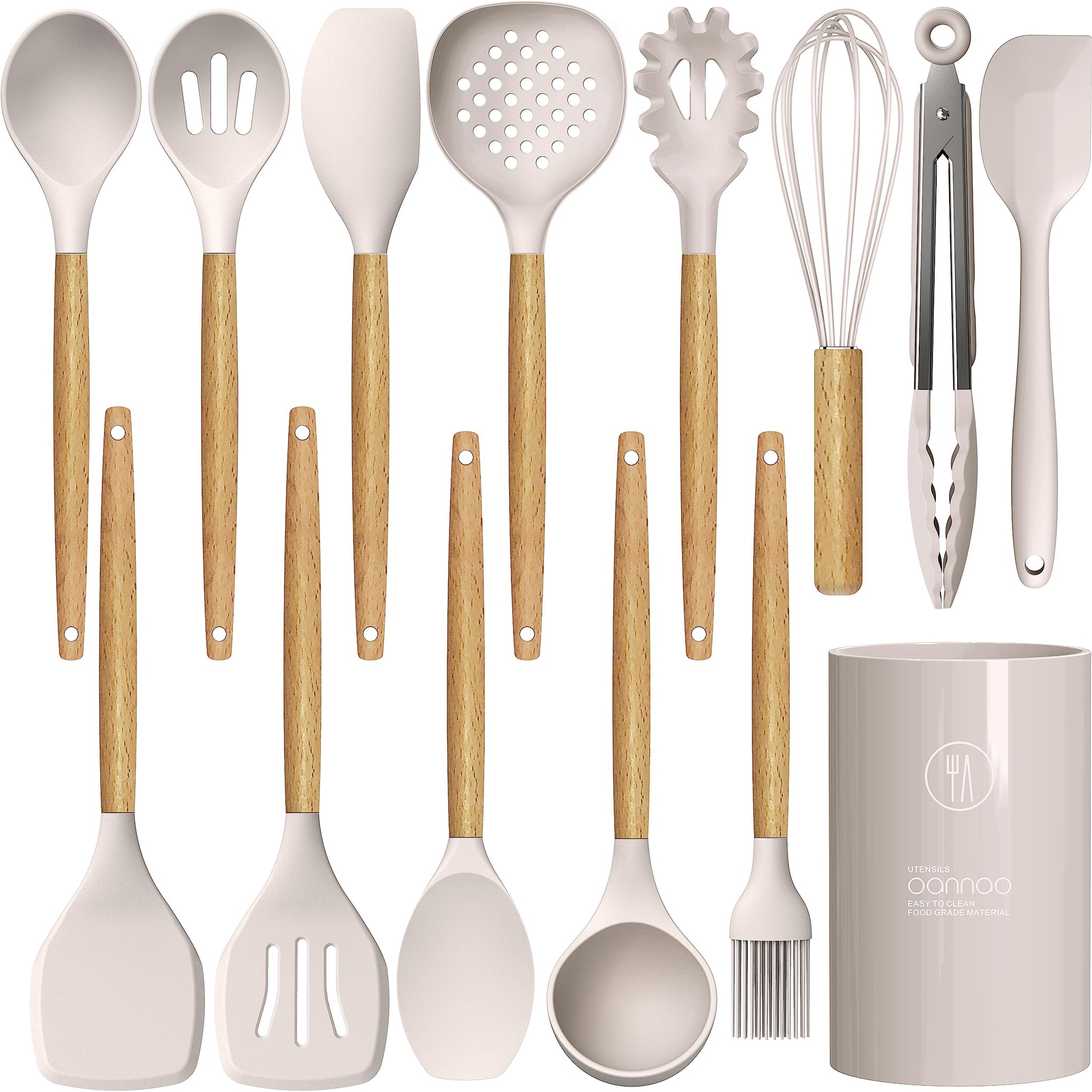 - HEAT-RESISTANT, NON-MELTING, WOODEN HANDLE - Silicone cooking utensils set are heat-resistant up to 446°F, ensuring they won't melt or produce smoke even in high-temperature frying. The comfortable wooden handle prevents heat transfer, providing a safe cooking experience. This is the go-to basic cooking set for a new home or apartment. Please note that each wooden handle has a slightly different color and texture