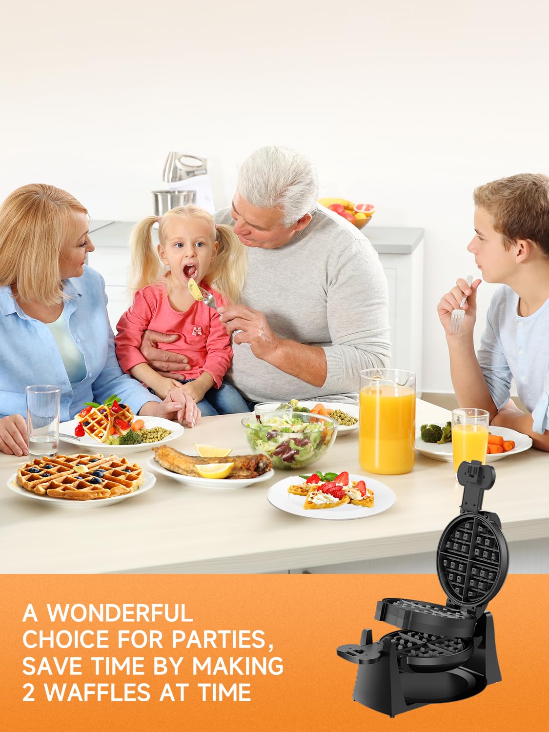 - 【1400W QUADRUPLE-SIDED HEATING】1400W High Power and Two sets of high-efficiency Double-Sided baking waffle plates contribute to a superior and faster cooking process. Making up to 8 waffles in just 6 minutes, so you can enjoy a delicious breakfast even on busy mornings