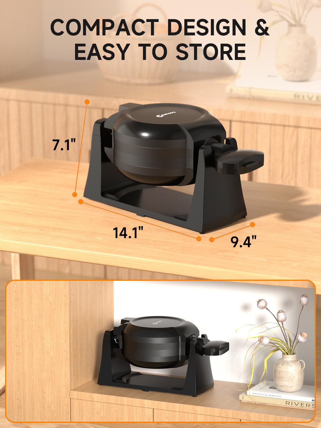 Get ready to make a perfect breakfast for whole family with Celahapy Classic Rotary Waffle Maker!