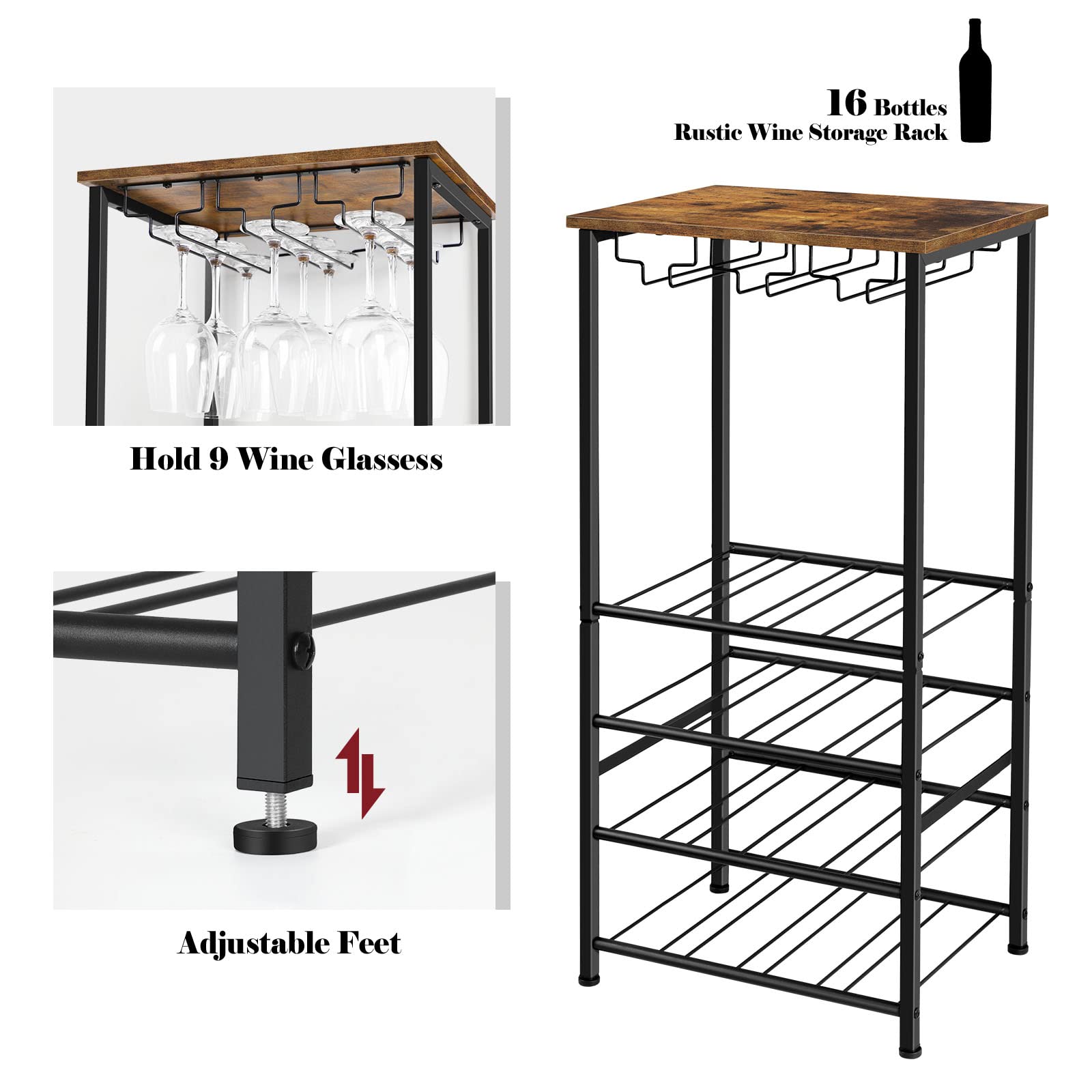 - š” ćMultifunctional Wine Rack TablećThis wine cabinet is equipped with a storage shelf, 9 glass holders, and 4 tier wine rack for 16 wines, which can meet the needs of your home wine bottle storage. The home wine cabinet is not only suitable for storing wine bottles, drinks, wine glasses, fruit plates, or ice buckets, but it can also display decorations, books, and other accessories.