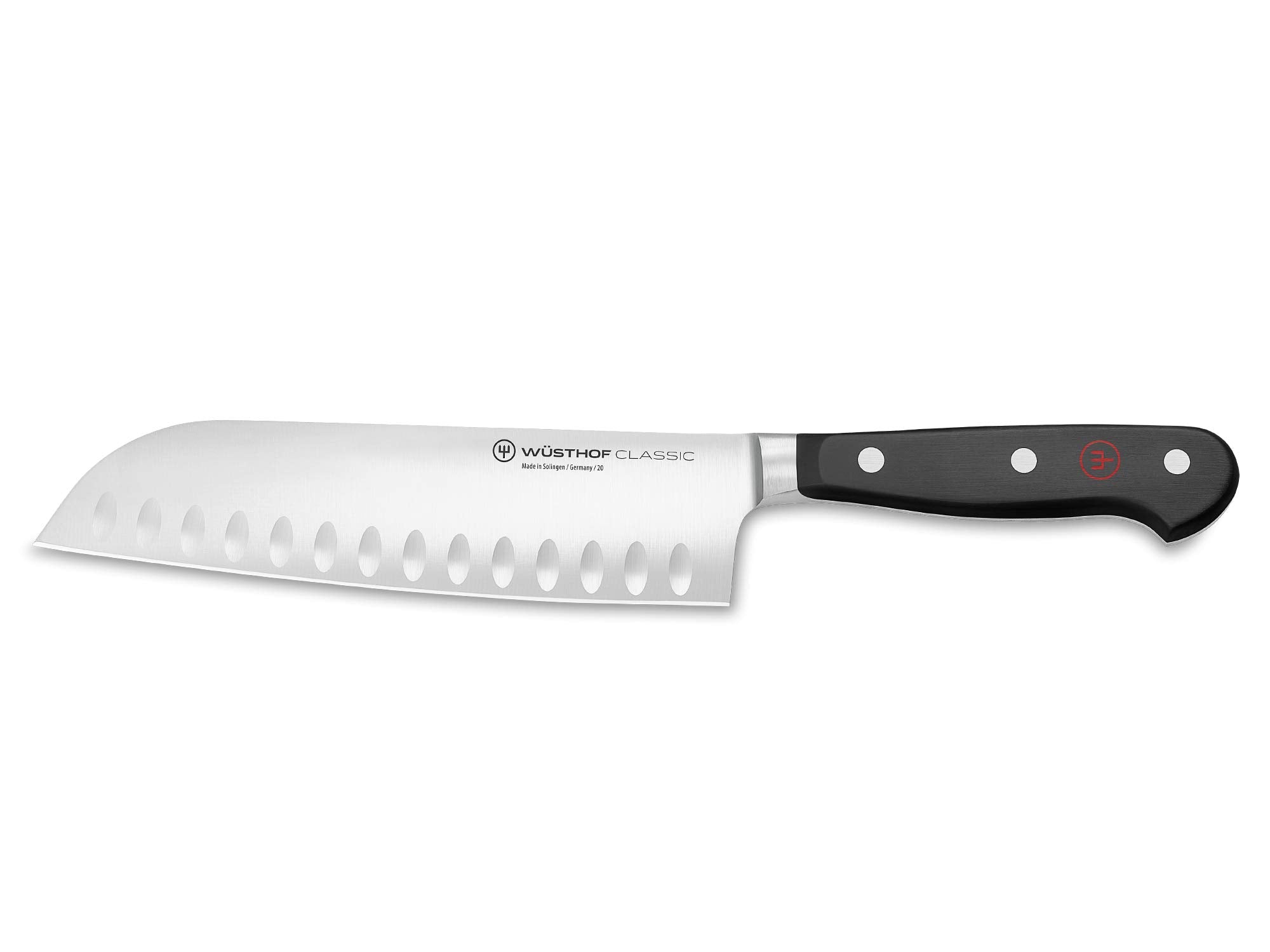 - Product 2: PRECISION FORGED – The 7” Santoku is forged from a single block of High Carbon Stainless Steel and tempered to 58-degree HRC. The Precision Edge Technology (PEtec) yields a blade that is 20% sharper with twice the edge retention than previous models. WÜSTHOF Classic Series Knives feature a full bolster and finger guard