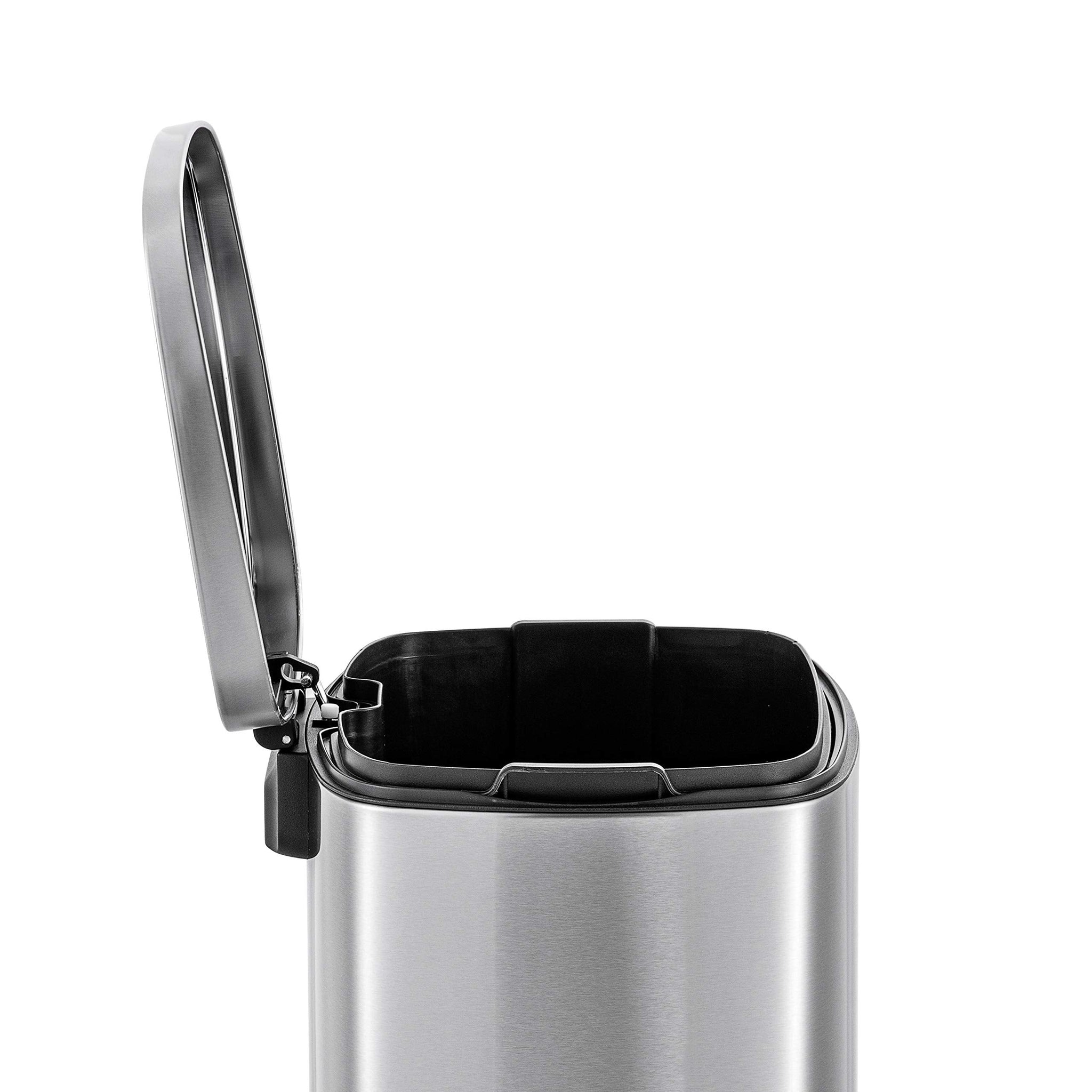 Suitable for any area of your home, this well-designed and engineered 50L Stainless Steel Step-On Trashcan is versatile and fits seamlessly in various spaces. The Rectangle Shape design allows it to blend in perfectly in areas such as kitchens, offices, living rooms, restaurant bathrooms, bedrooms, dorm rooms, or any open space . The removable bucket liner feature allows you to keep the bag hidden from public view, maintaining a neat and clean appearance. 50L capacity with easy step-on mechanism Stainless steel construction with soft close lid closer Removable bucket liner keeps the bag hidden from sight Keeps trash orderly for a tidy space Versatile slim design suitable for many areas