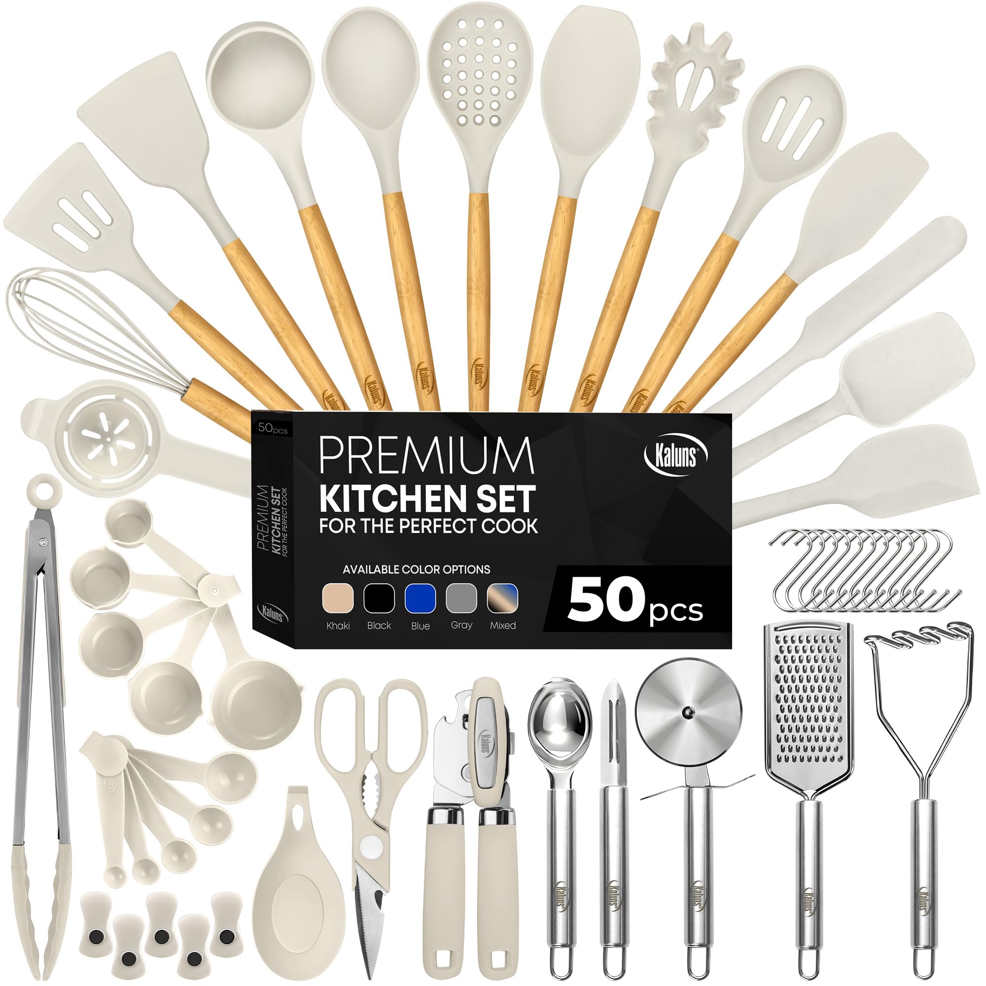 Silicone Kitchen Utensil Sets Heat Resistant Kitchen Utensils Set, Stainless Silicone Utensils Set for Nonstick Cookware, BPA Free, Dishwasher Safe