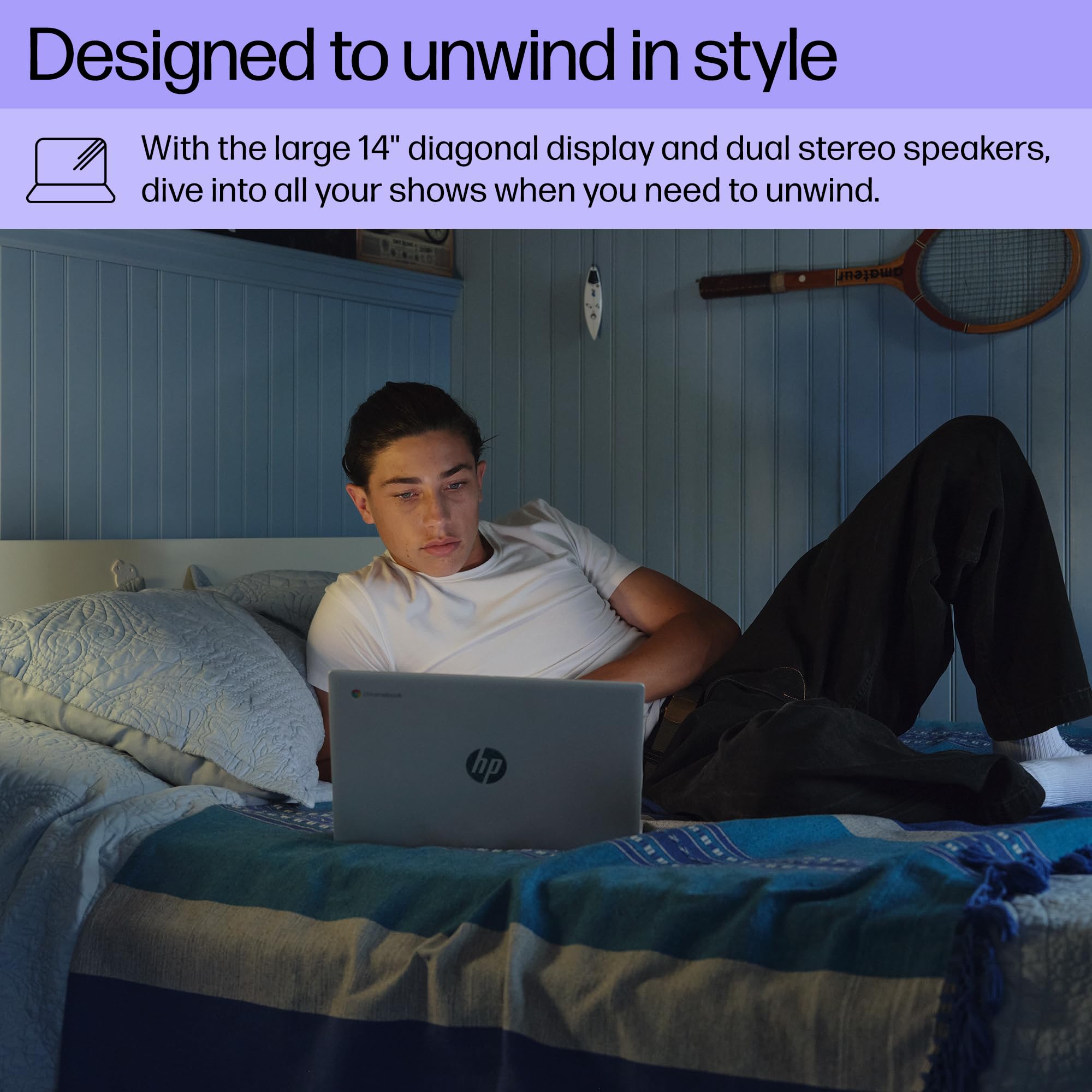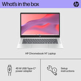 Details: The HP Chromebook 14” Laptop lets you take on the day with an Intel processor paired with the easy to use and easy to love Chrome OS. With plenty of memory and wireless connectivity it is easy to check everything off your list. Plus, this laptop is designed to be more sustainable using ocean-bound plastic and post-consumer recycled plastics. The HP Chromebook 14” Laptop comes with a 45 W USB Type-C power adapter and goes from 0 to 50% charge in 45 minutes. Plus, made with the planet in mind, this HP notebook is EPEAT Gold registered and ENERGY STAR certified. HP is here to help. This HP computer comes with 1-year limited hardware warranty and 90-days limited technical support for software and initial setup with 24-hour, 7 days a week web support when shipped from and sold by Amazon.com.ENERGY STAR and the ENERGY STAR mark are registered trademarks owned by the U.S. Environmental Protection Agency. Based on U.S. EPEAT registration according to IEEE 1680.1-2018 EPEAT. EPEAT status varies by country. Visit www.epeat.net for more information.