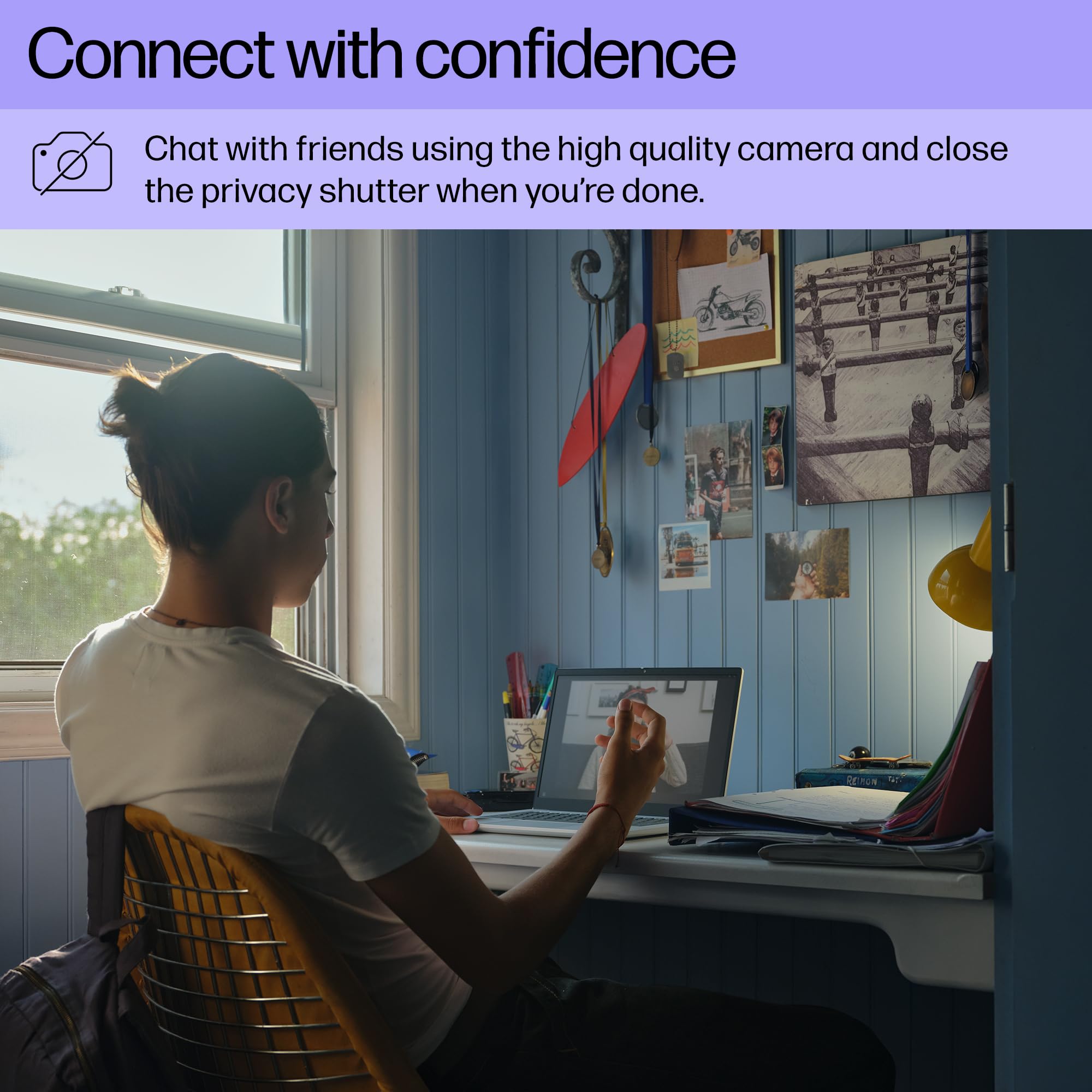 - CONNECT WITH CONFIDENCE - Chat or collaborate with friends using the high-quality HP True Vision HD camera and keep your private moments private with the easy-to-access camera privacy shutter when not in use
