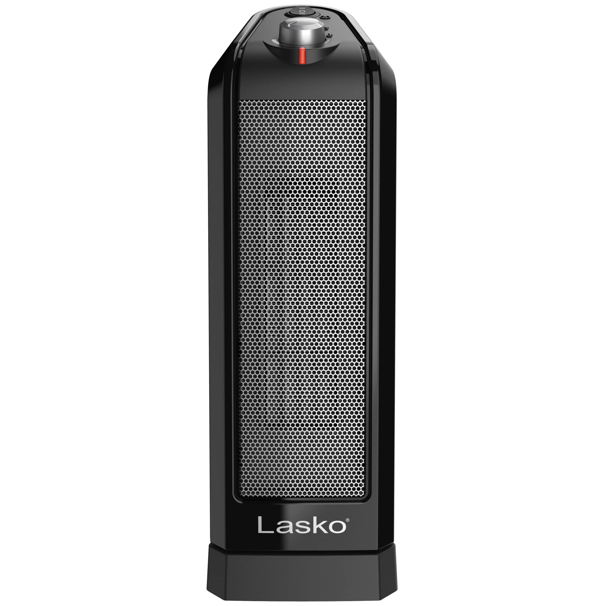Details: This powerful ceramic space heater from Lasko is ideal for tabletop or floor use. With 1500 watts of comforting warmth, this small heater will make you feel cozier and more comfortable in your home office, living room, bedroom—almost any room in the home. This portable heater features an adjustable thermostat, easy-to-use controls, widespread oscillation, 2 heat settings, and a built-in carry handle. When the weather turns chilly, save on your overall heating costs by warming the room you're in and turning down the whole-house thermostat. This electric heater is equipped with safety features, including overheat protection and cool-touch housing. Comes fully assembled, plus a 3-year limited warranty.