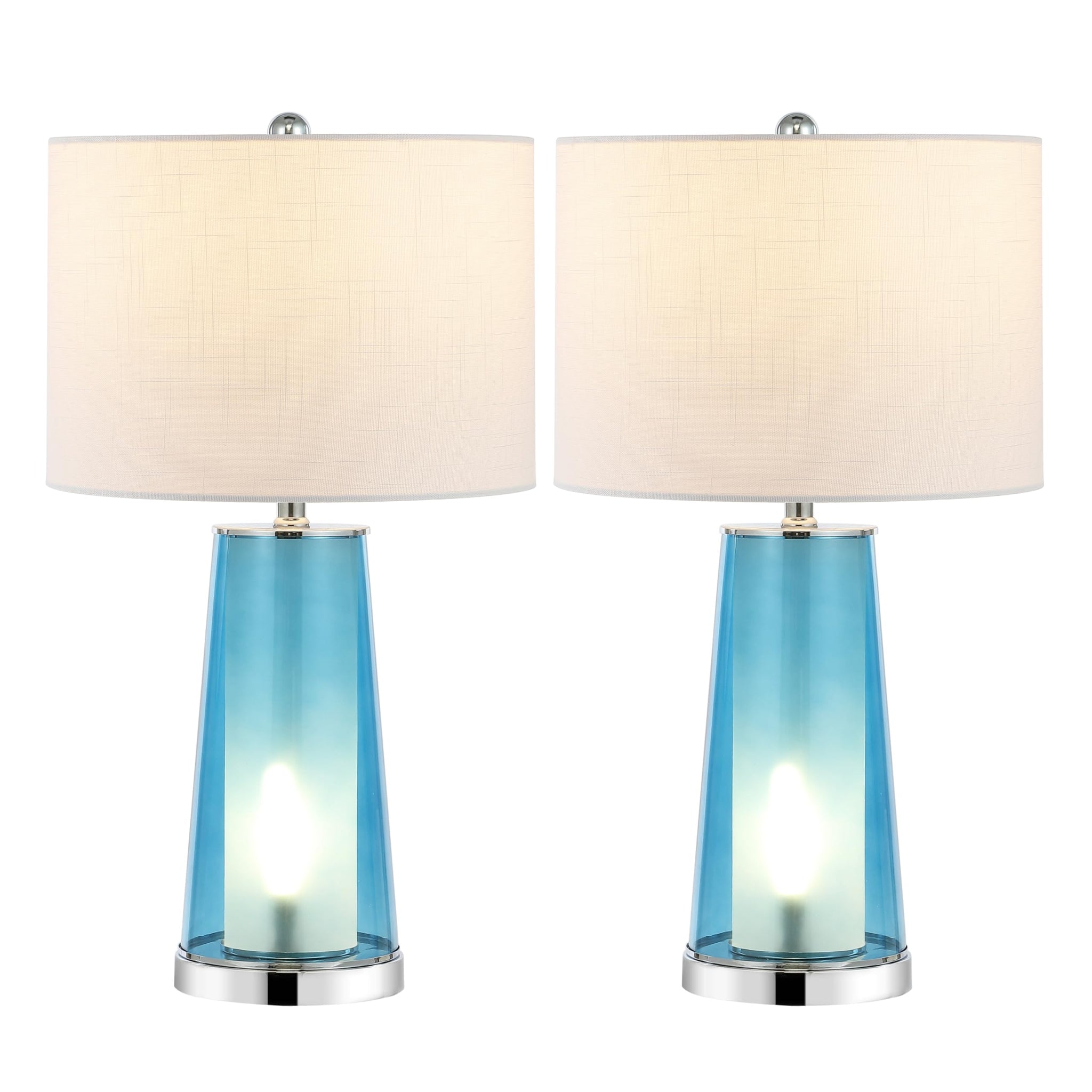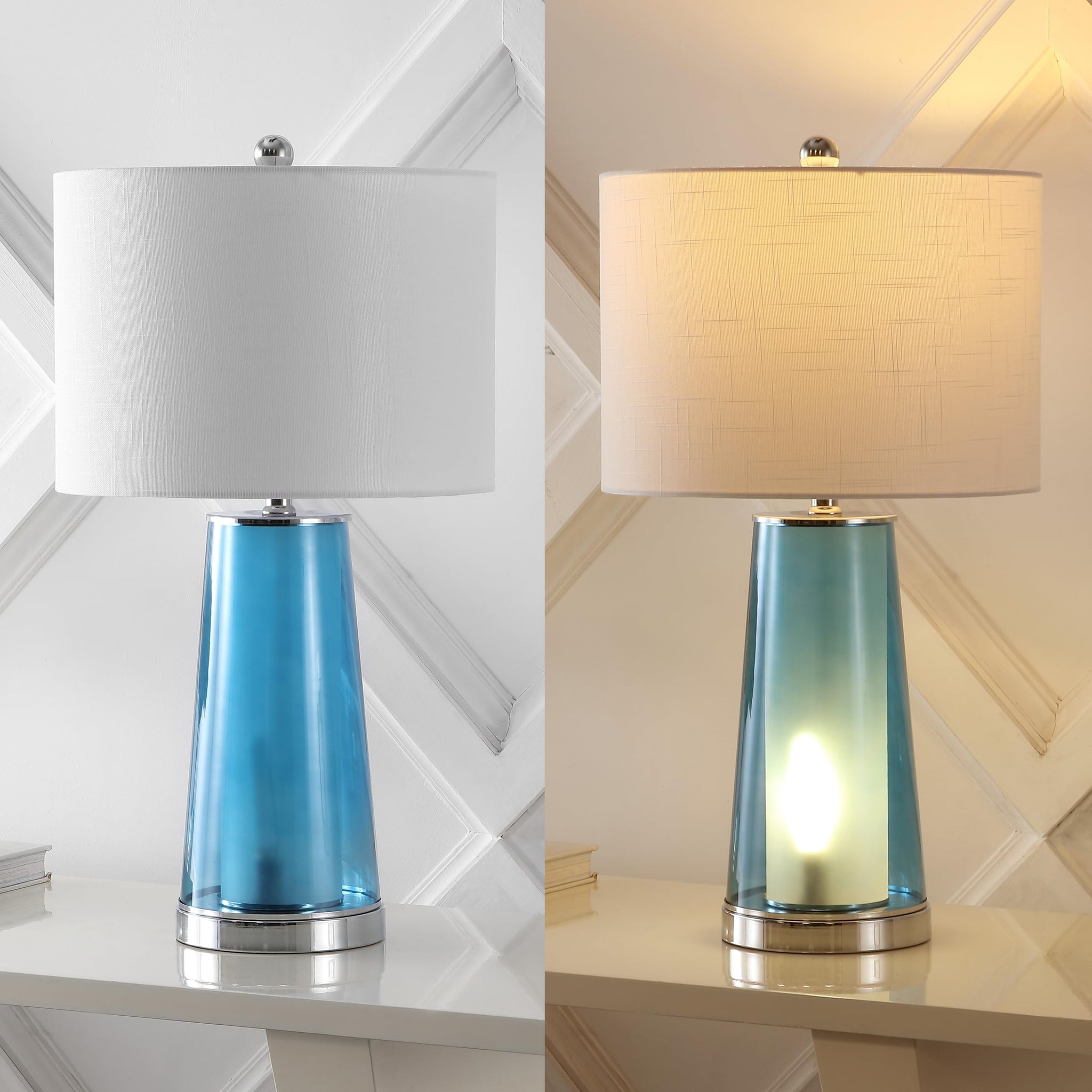 Details: The frosted glass finish on our versatile modern lamps make them the perfect neutral for almost any interior. Turn on the second bulb in the base for extra glow, or use it as a night light. Add low-key farmhouse style to the bedroom, living room, or dining console with this chic pair of lamps.