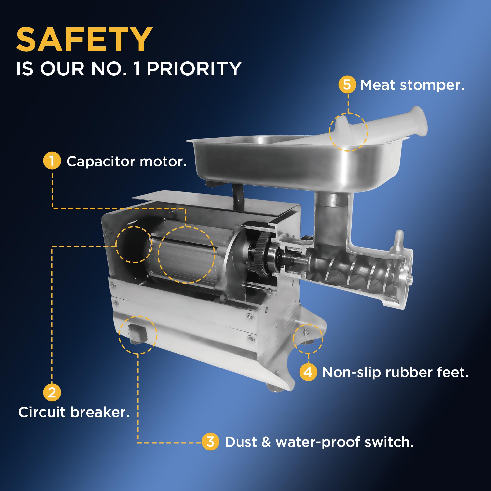 Electric Meat Grinder Featuring Aluminum 200 Ground Meat Packaging System.