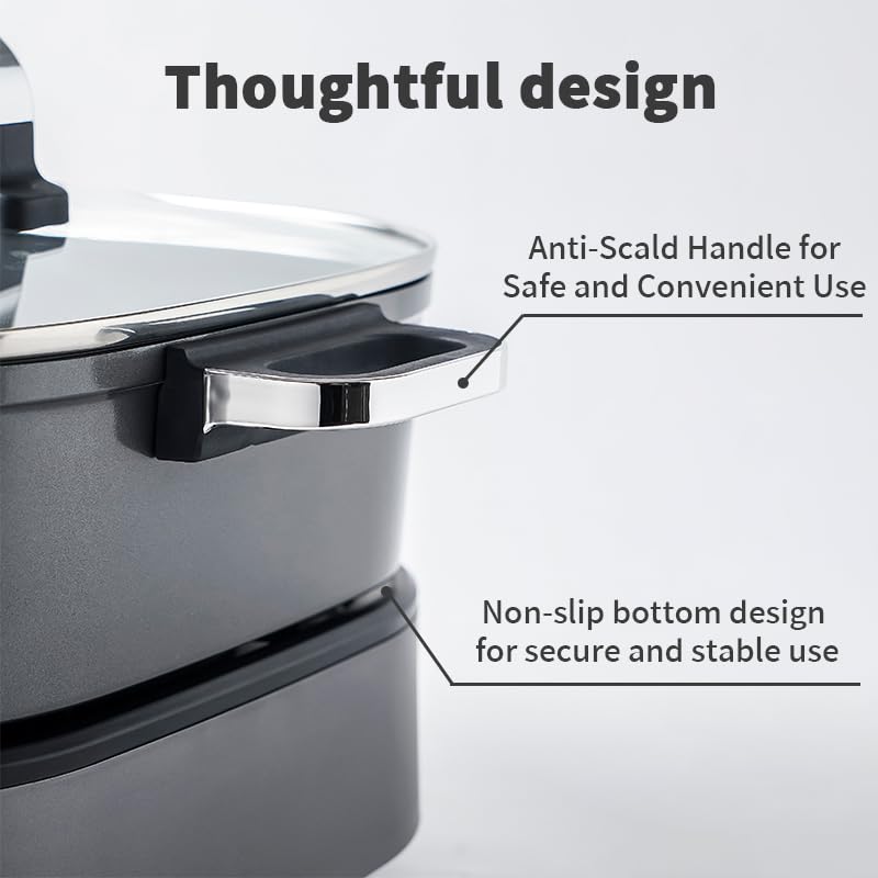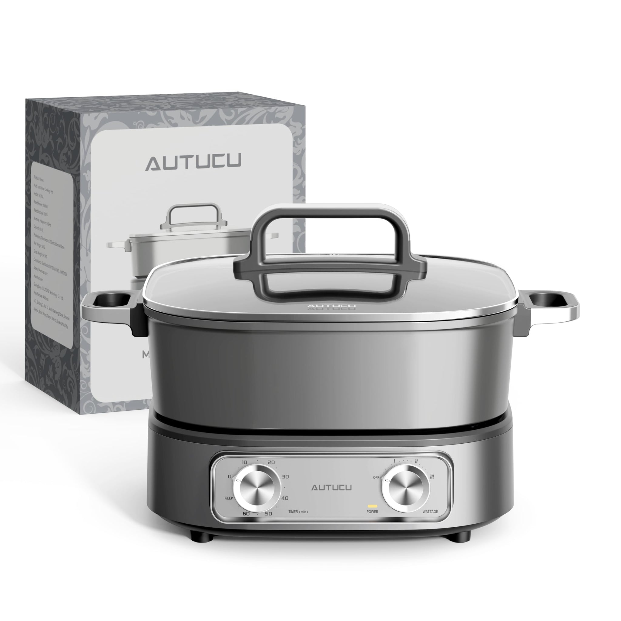 Multi-cooker, Steamer, Auto Warmer, Fast Cooking, Portable Pot, Detachable Heating Base, 5 Cooking Models, White