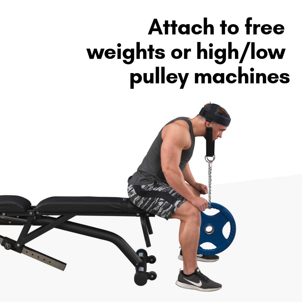 - ADAPTABLE AND CONVENIENT: Body-Solid's neck harness is designed to accommodate all athletes, particularly those involved in contact sports. It's versatile enough to be used with free weights or attached to a high or low pulley on a machine.