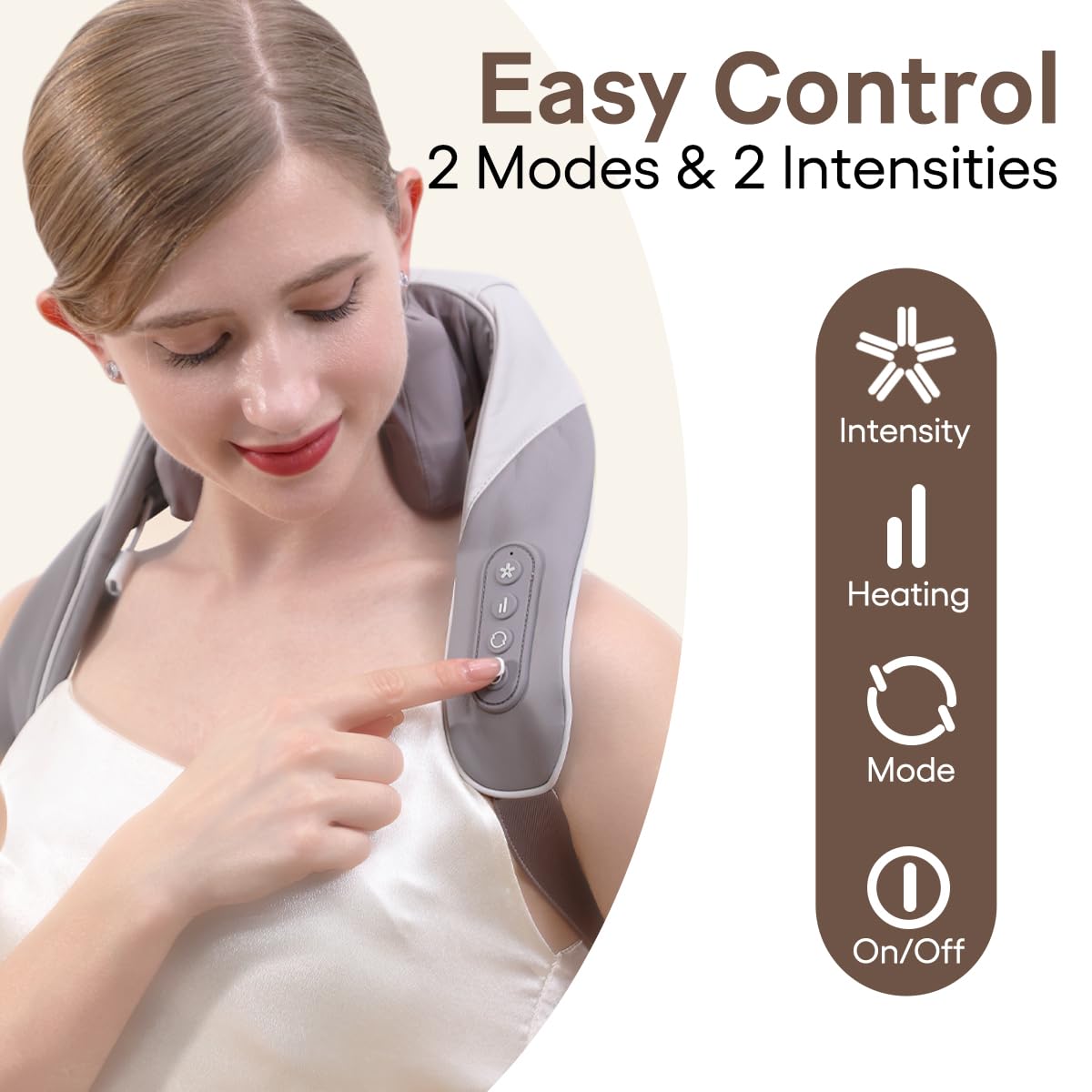 - Easy to Use--The neck massager has integrated controls for convenient use.Breathable soft PU material,flexible strap,you can easily adjust the pressure in the soft area for better results.