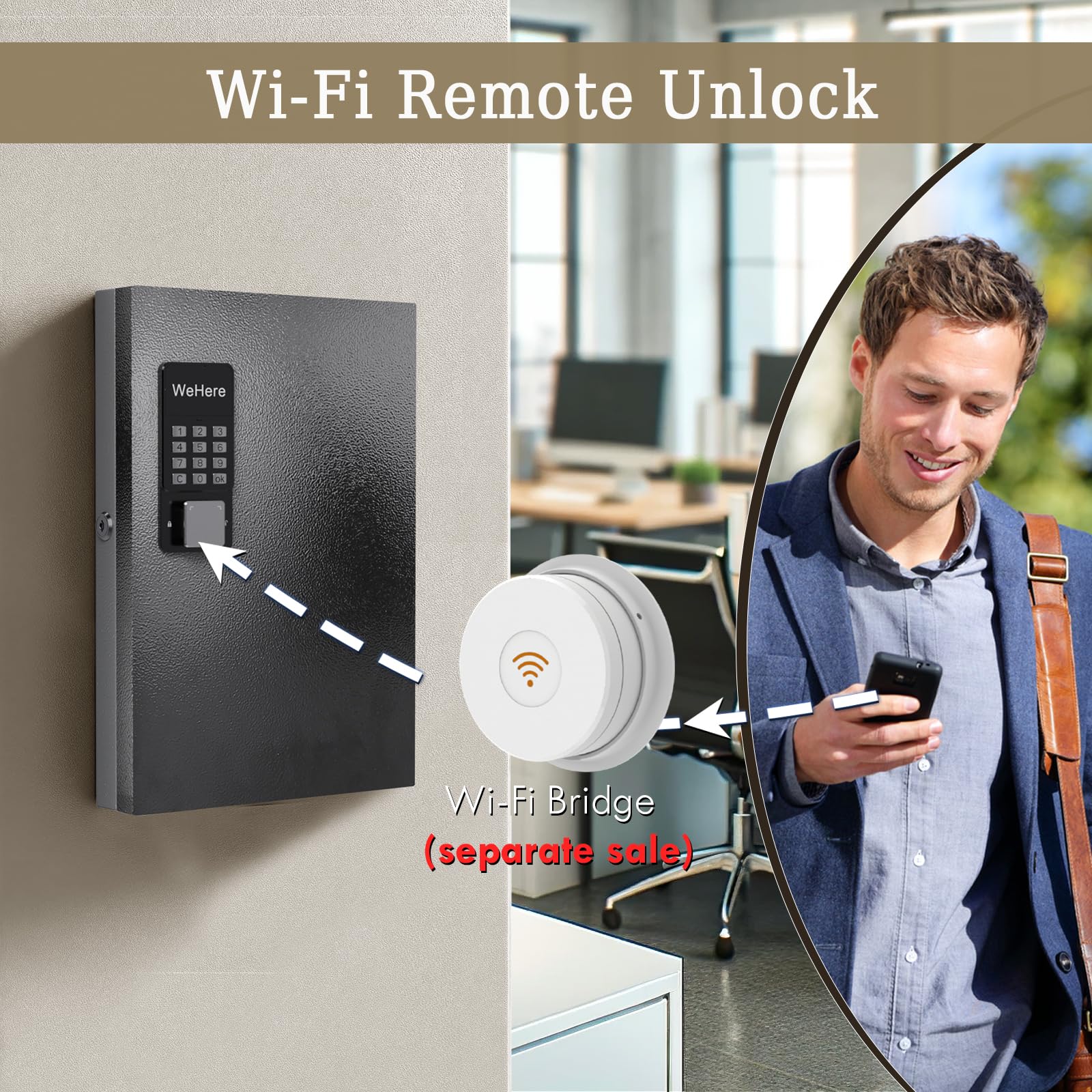 - 【KEY STORAGE BOX】This key storage box use OTP technology and does not require an internet connection. Being able to work offline makes our security products suitable for occasion with weak or no WiFi .Of course,you can buy another WiFi device to unlock it.