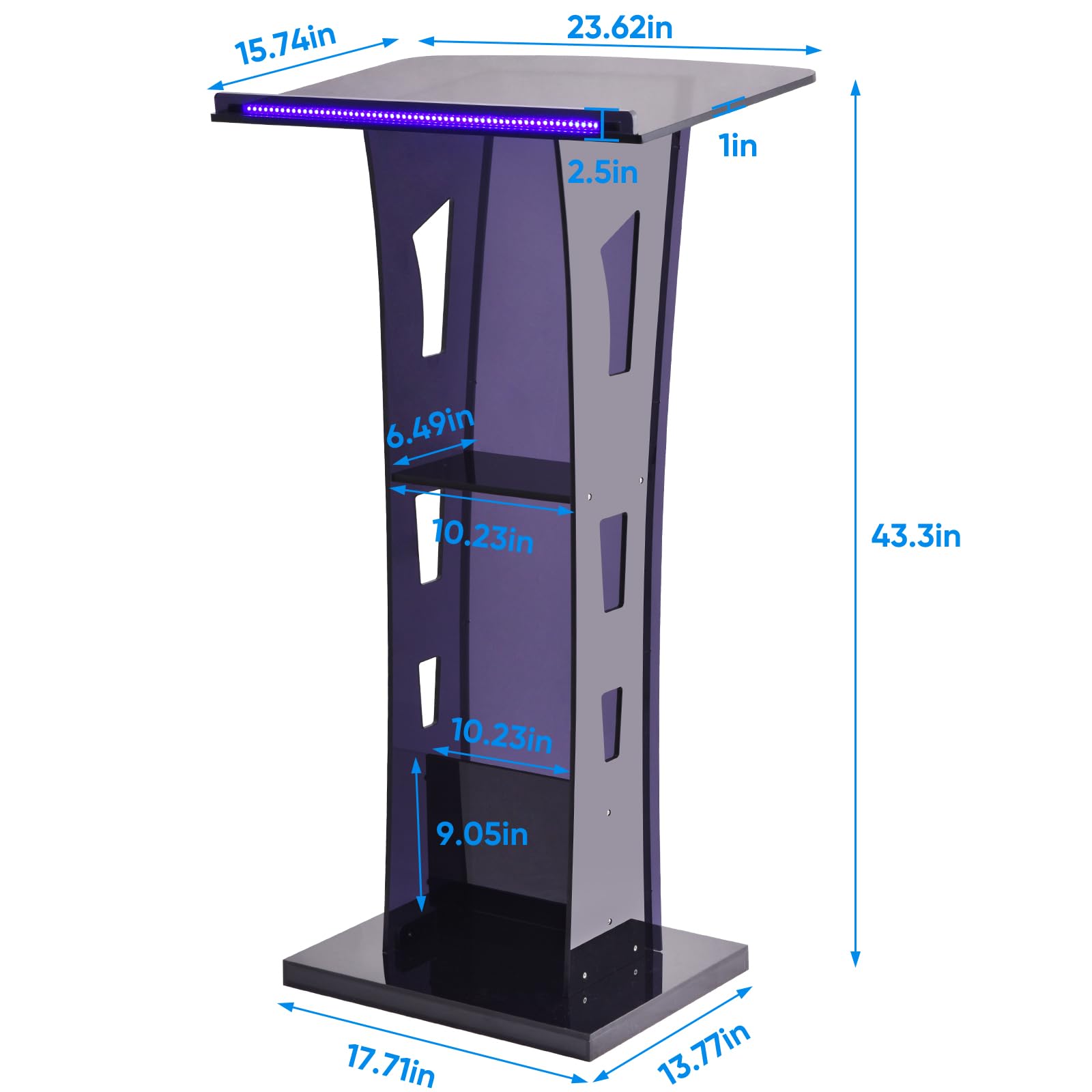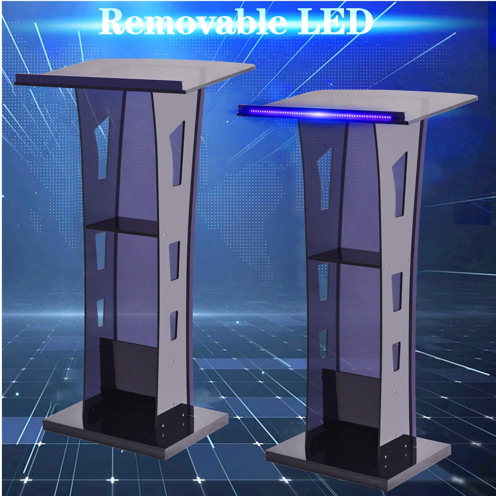 • 𝗔 𝗖𝗹𝗲𝗮𝗿 𝗔𝗰𝗿𝘆𝗹𝗶𝗰 𝗦𝗵𝗲𝗹𝗳 & 𝗙𝗿𝗲𝗲 𝗟𝗲𝗱 𝗦𝘁𝗿𝗶𝗽 - This podilum stand also features a clear acrylic shelf on the inside for convenient storage options; 𝗮𝗻 𝗮𝗱𝗱𝗶𝘁𝗶𝗼𝗻𝗮𝗹 𝗨𝗦𝗕 𝗹𝗲𝗱 𝗹𝗶𝗴𝗵𝘁 𝗶𝗻𝗰𝗹𝘂𝗱𝗲𝗱 𝗳𝗼𝗿 𝗳𝗿𝗲𝗲 𝘁𝗼 𝗺𝗲𝗲𝘁 𝘆𝗼𝘂𝗿 𝗽𝗼𝘁𝗲𝗻𝘁𝗶𝗮𝗹 𝗻𝗲𝗲𝗱𝘀