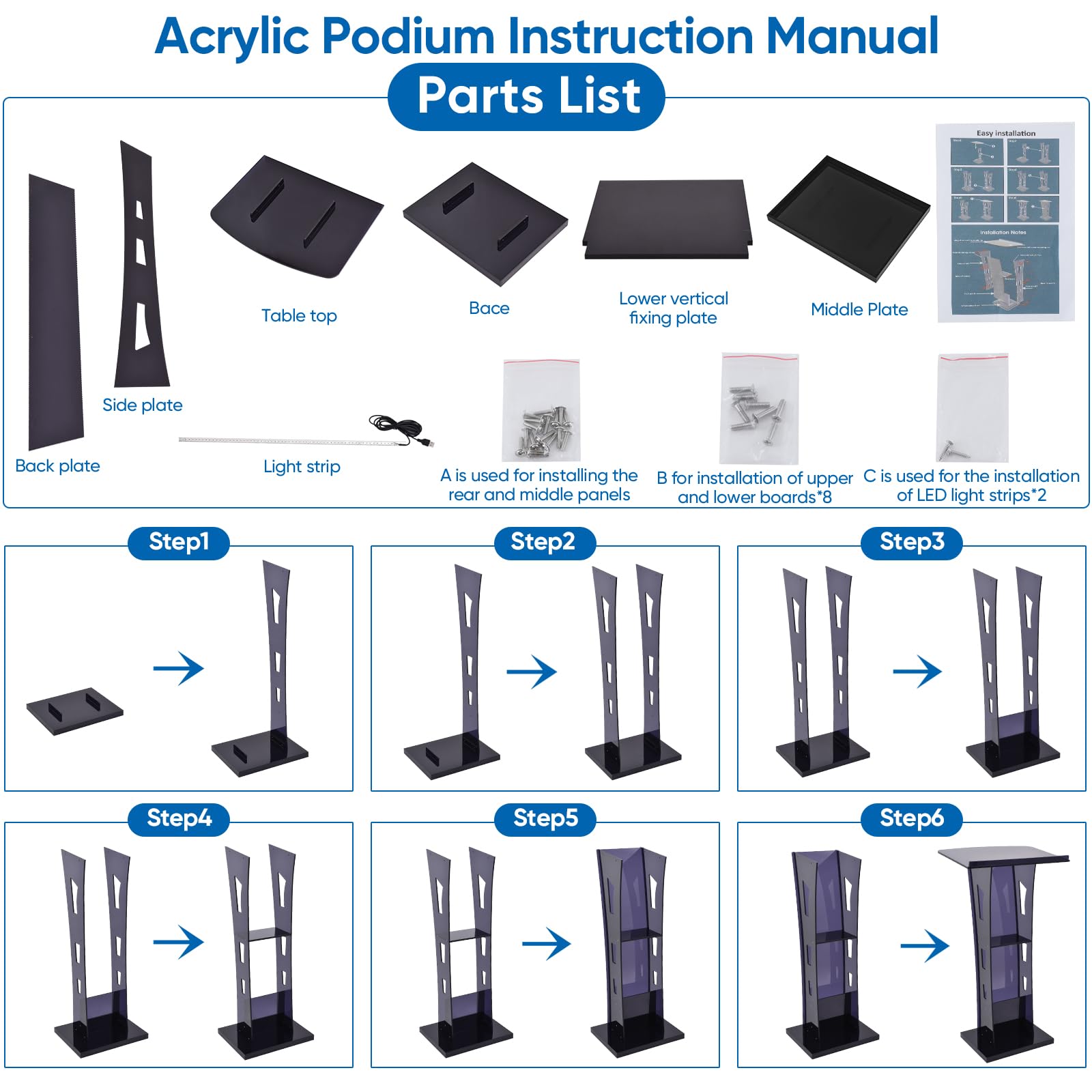 • 𝗣𝗼𝗿𝘁𝗮𝗯𝗹𝗲 𝗮𝗻𝗱 𝗟𝗶𝗴𝗵𝘁𝘄𝗲𝗶𝗴𝗵𝘁 - The podium is acrylic made,lightweight and easy to move. The portable feature making it simple to transport it to other venues as needed.