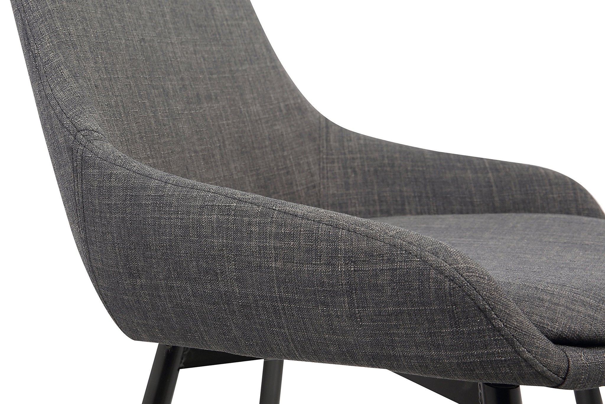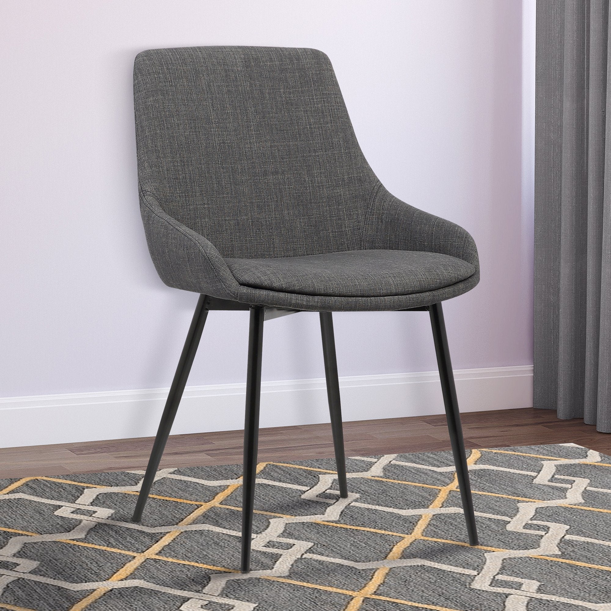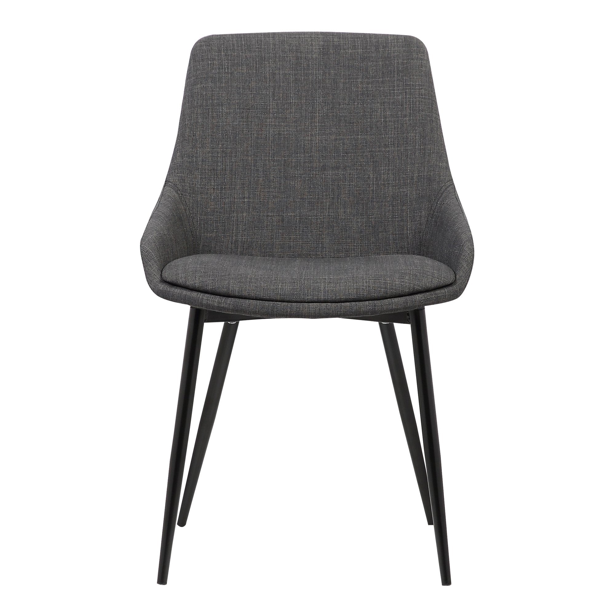 Details: The Armen Living Mia contemporary dining chair is a practical yet stylish addition to any contemporary dining room arrangement. The seat is made of a plywood frame covered with an exquisite fabric while the legs are made of a sturdy yet stylish black metal. The Mia chair comes in two exceptional color choices: charcoal and Gray. The plush padded seat with high-density foam will provide you with all-day comfort. The curved wood medium-high back is ideal for posture alignment and an unmatched support for days on end. The foundation of the product is supported by solid wood for a chic and stylish aesthetic without comprising the practicality and functionality of this item. This product ships in one box with an easy and quick set up. We stand by the quality, the craftsmanship, and the integrity of our product by offering a 1-year warranty for all our products. We want our customers to enjoy our product and we will always be there to help with our top-notch customer service support. Product dimensions: 20"W x 23"D x 33"H SH: 18.5"H