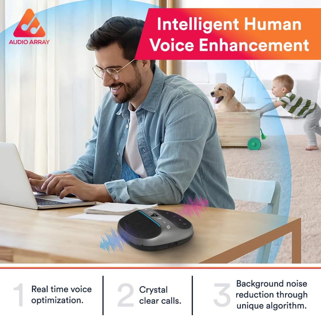 - 🔊 Voice Enhancement During conversations, your voice is automatically balanced to make up for differences in volume and distance from the Bluetooth speakerphone. This ensures a consistent listening experience at the far end and improves the listening comfort of the meeting.