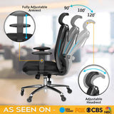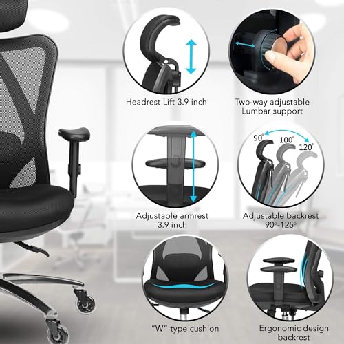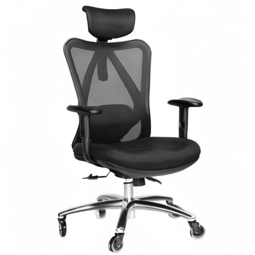 Details: COMFORTABLE - Thanks to this state-of-the-art office chair’s numerous adjustable features you can be assured of finding a comfortable seating position just for you. You can adjust the headrest height and angle; the lumbar support height and depth; the armrest height and distance from the seat; the seat height; the backrest tilt; and the tilt tension BREATHABLE MESH - The breathable mesh back on this ergonomic office chair provides support while keeping your back cool and comfortable. Cool air circulates through the mesh keeping your back sweat-free and allowing you to sit in the chair comfortably for longer periods of time compared to traditional chairs BACK SUPPORT - Have back issues or don’t want to develop them? This adjustable office chair includes adjustable lumbar support and a recline feature that allows you to tilt the backrest back or sit straight. Now you can quickly find a position that makes your back feel the most comfortable! EASY TO INSTALL - Simple instructions enable anyone to put this executive chair together in eight simple steps! Then once built you’ll be able to adjust the chair to your individual needs. The chair’s pneumatic controls will let you raise or lower the seat and tilt back the backrest or sit straight up. You can easily find the ergonomic position that will allow you to work comfortably for long periods of time HIGHEST QUALITY - This adjustable task chair is made to last. It has a weight capacity of 330 LBS and is made from the highest quality materials, including a soft cushion seat, sturdy arm, and headrests and rollerblade caster wheels that allow you to move easily across the office floor. Get your office chair – and boost your work comfort! Your purchase will be backed by a 100% money-back guarantee. Try this chair for 90 days - if you don't love it, you can return it