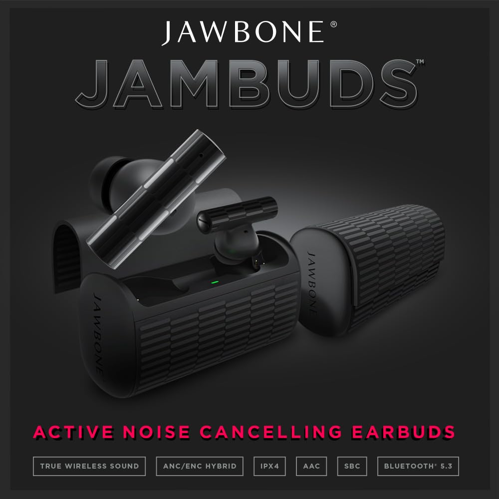Details: Jawbone Jambuds True Earbuds Wireless Bluetooth redefine the standard for personal audio with an innovative blend of style, technology, and superior sound quality. Engineered to deliver both powerful sound and profound silence, these Bluetooth headphones earbuds are equipped with a 20Hz-20kHz frequency response range, providing deep bass, clear mids, and crisp highs. The Hybrid Active Noise Cancellation and Environmental Noise Cancellation features ensure that your listening experience is uninterrupted, whether you're enjoying music, podcasts, or making calls. But Jawbone® Jambuds don't just excel in function—they shine in form as well. Encased in a sleek, Japanese tatami mat-inspired design, the Jambuds charging case is more than just practical. It offers a tactile, texturized surface and a magnetic clasp that snaps shut with a satisfying click. Inside, it houses enough power to provide at least six full recharges for your bluetooth earbuds with mic, ensuring you're never caught without your favorite tunes. Comfort is key with the Jambuds, making them the perfect companion for any activity. Whether you're navigating a busy city, working out at the gym, or simply relaxing at home, these in ear earbuds stay securely in place. And with an IPX4 water-resistance rating, they can withstand a bit of sweat or unexpected rain. Need to stay aware of your environment? Simply activate Ambient Mode to blend your audio with the sounds around you. Built on the latest Bluetooth 5.3 technology, Jawbone Jambuds ensure a stable connection and efficient power use, keeping you connected longer with less charging. The case charges in just 1.5 hours, while the earbuds are ready to go in just 1 hour, making them as reliable as they are stylish. From their advanced noise-canceling capabilities to their elegant design, Jawbone Jambuds are the ideal blend of performance and aesthetics.