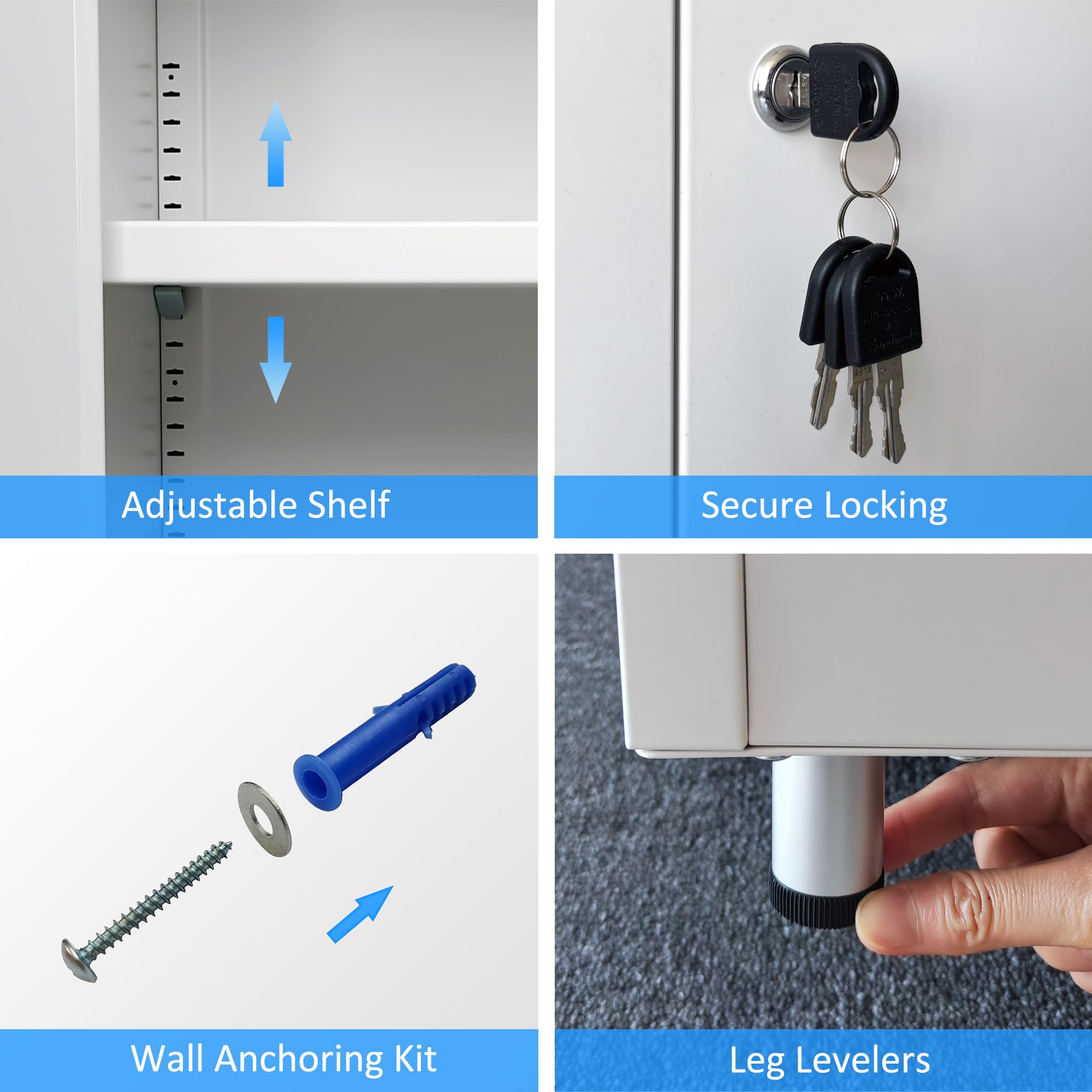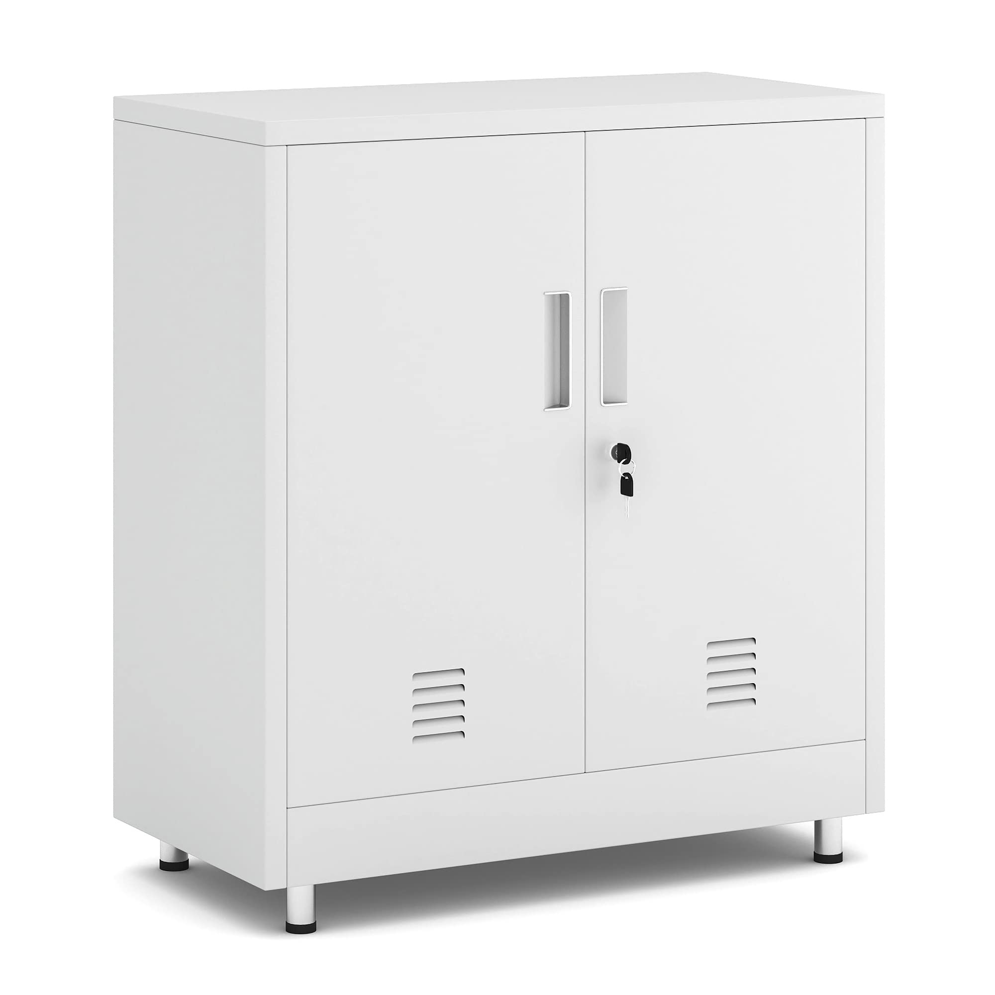 - LOCKABLE DOORS - This metal storage cabinet features locking doors with 4 keys, it is also fitted with door stopper to keep the doors stay shut when it is not locked