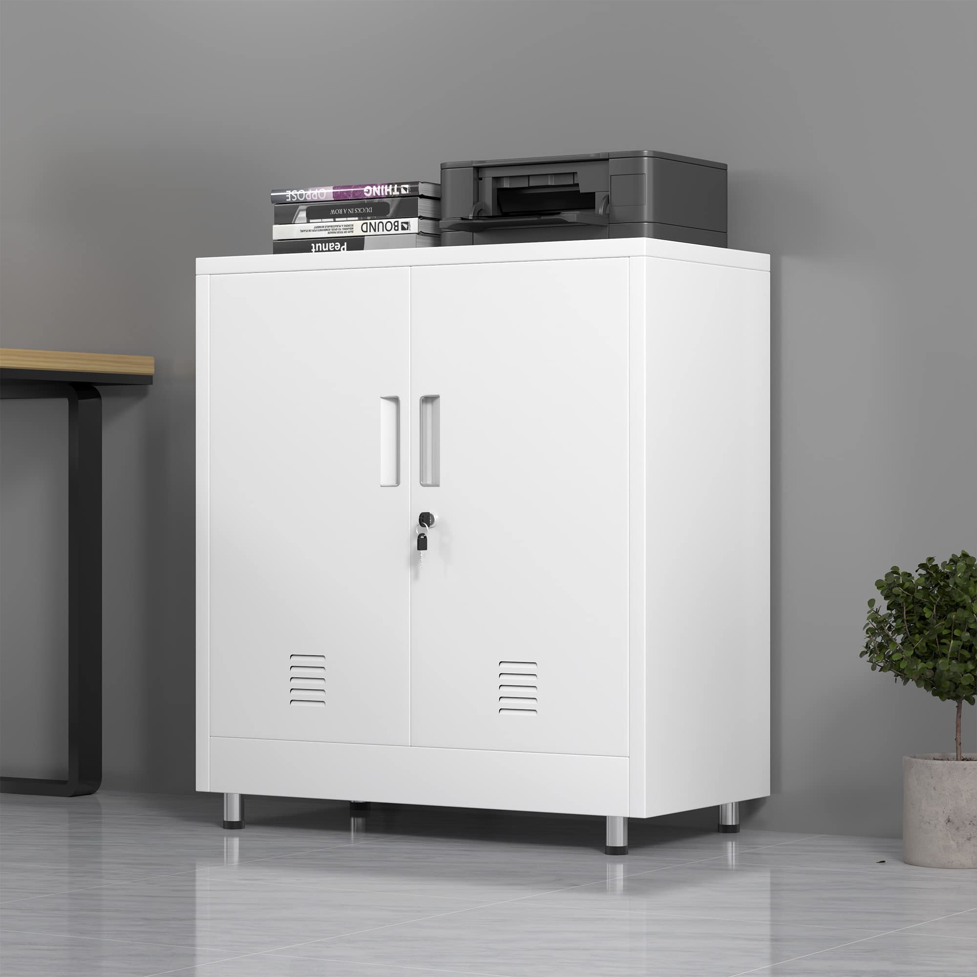 - STURDY AND DURABLE - Built with powder coated metal and reinforced construction, this lockable cabinets are designed to be hard-wearing and scratch-resistant