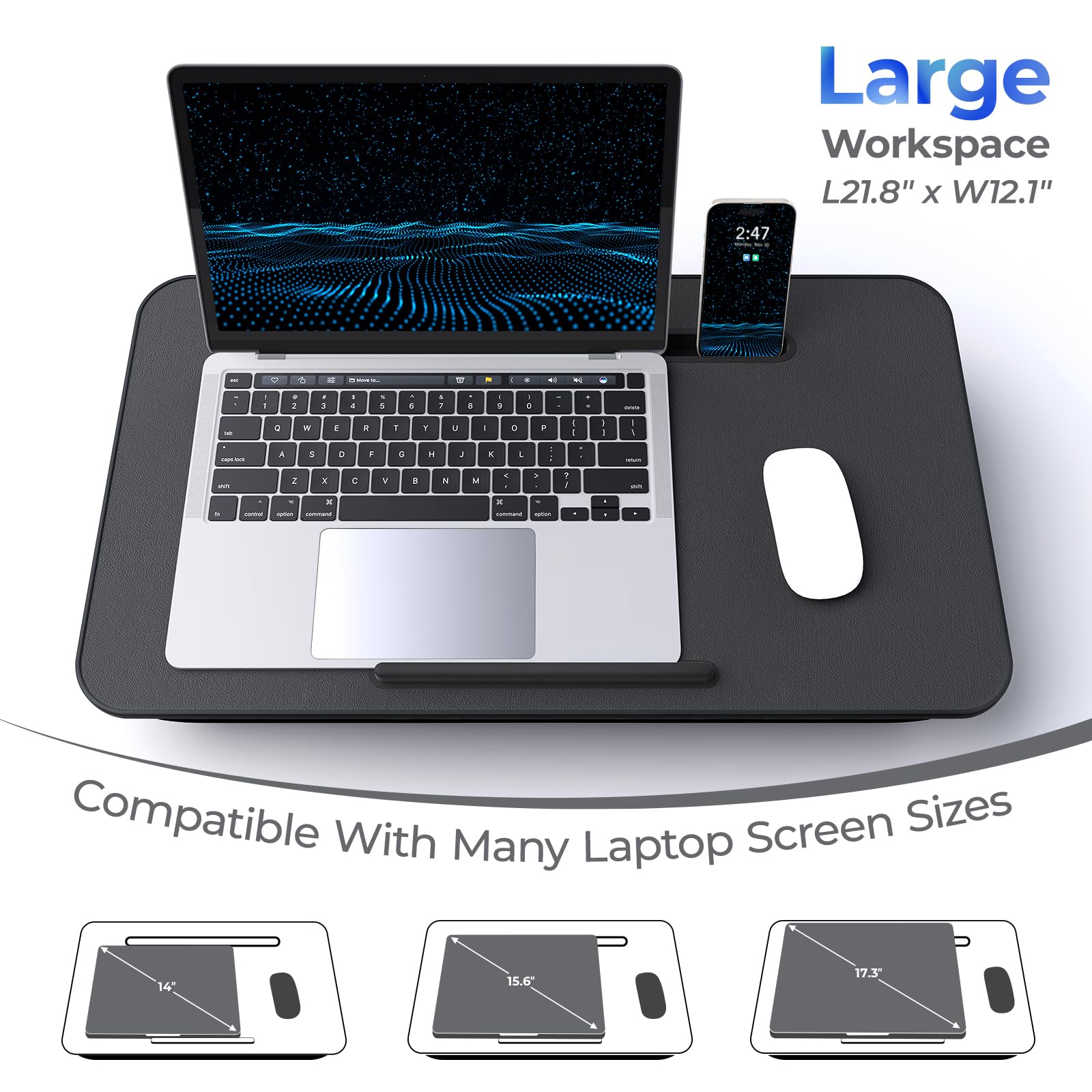 - 2. [Large Workspace]: The dimensions of the laptop lap desk are 21.8 x 12.1 x 2.7 inches, providing ample space for a keyboard and mouse. Our lap pillow desk is ideal for gamers playing couch gaming on TV. It can fit laptops up to 17 inches, and it’s a perfect fit for laptops under 15.6 inches and a mouse.