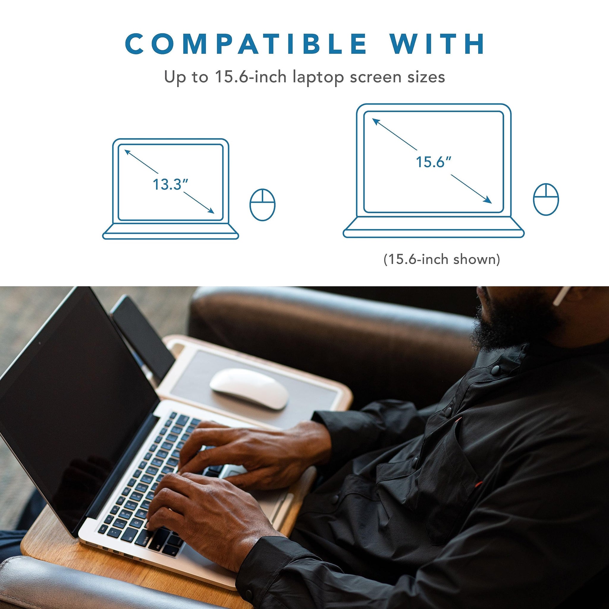 - Spacious Design: Measuring 21.1" wide and 12" deep, our lap desk comfortably fits most laptops up to 15.6". Extra room for accessories ensures convenience.