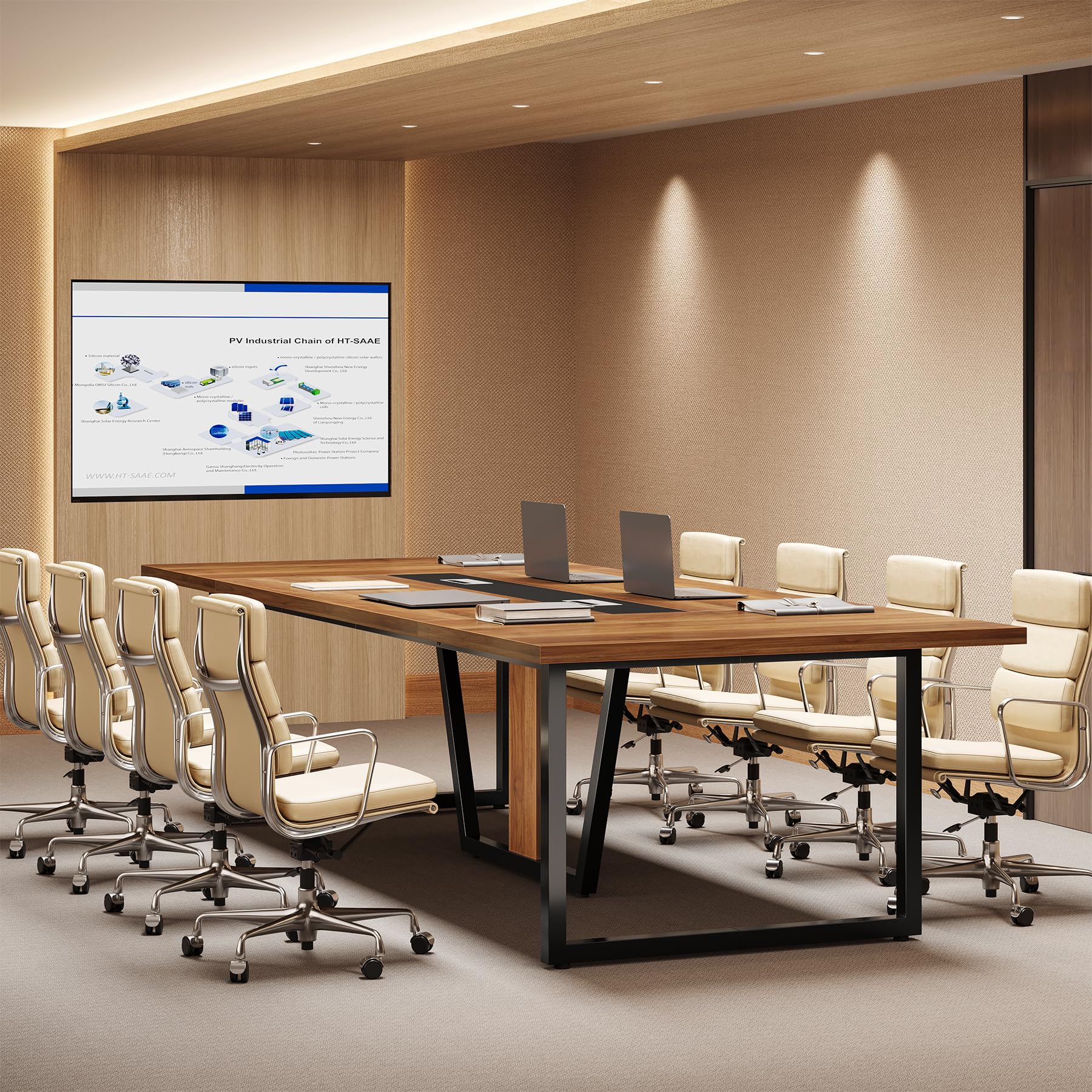 - [SPACIOUS 10-SEAT CONFERENCE TABLE]: With measurements of 94.49 L x 47.24 W x 29.53 H inches, this expansive conference table can comfortably accommodate 8-10 participants with ease. Ample under-table space allows for comfortable leg room, helping to maintain comfort during prolonged meetings.