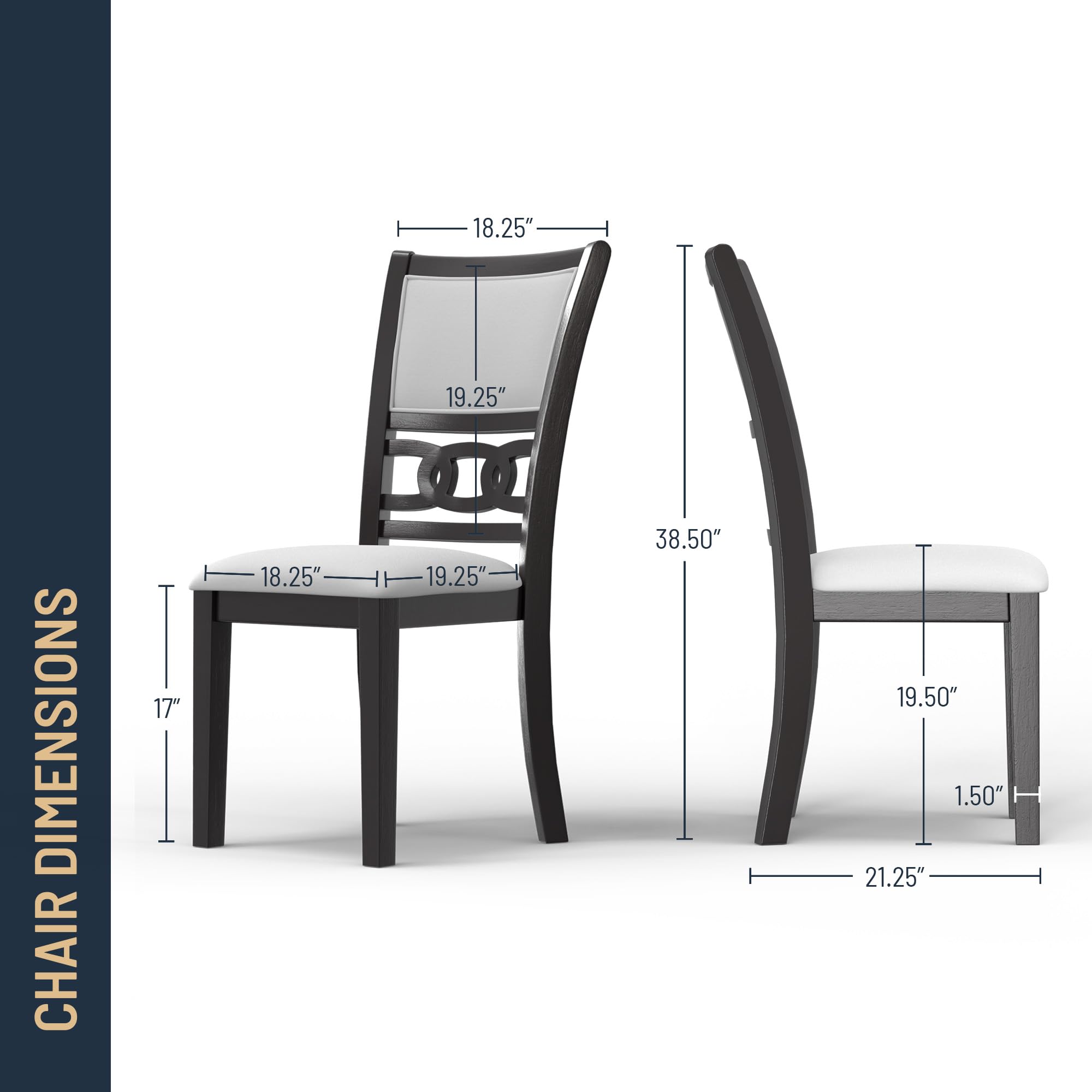 - Quality Dining Room Set: New Classic Furniture Wood Dining Table and Dining Chairs crafted from Mindi Wood Veneers and Solid Rubber Wood for High-Quality, Long-Lasting Furniture.