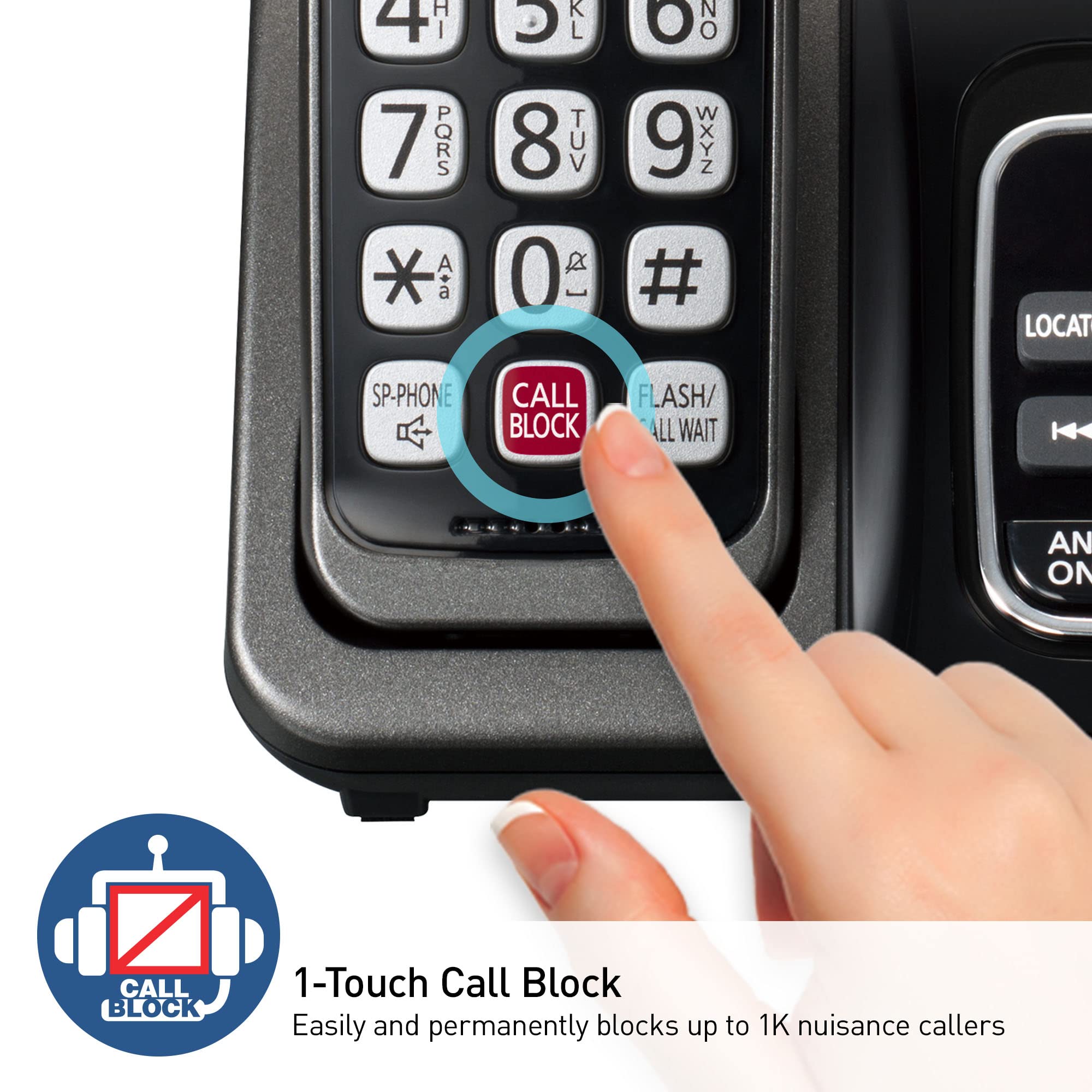 - Advanced Call Blocking: Automated Call Block pre-blocks robocalls; Telemarketing Call Block lets you to block announced callers; block 1,000 more with 1-touch Call Block Button on the handset