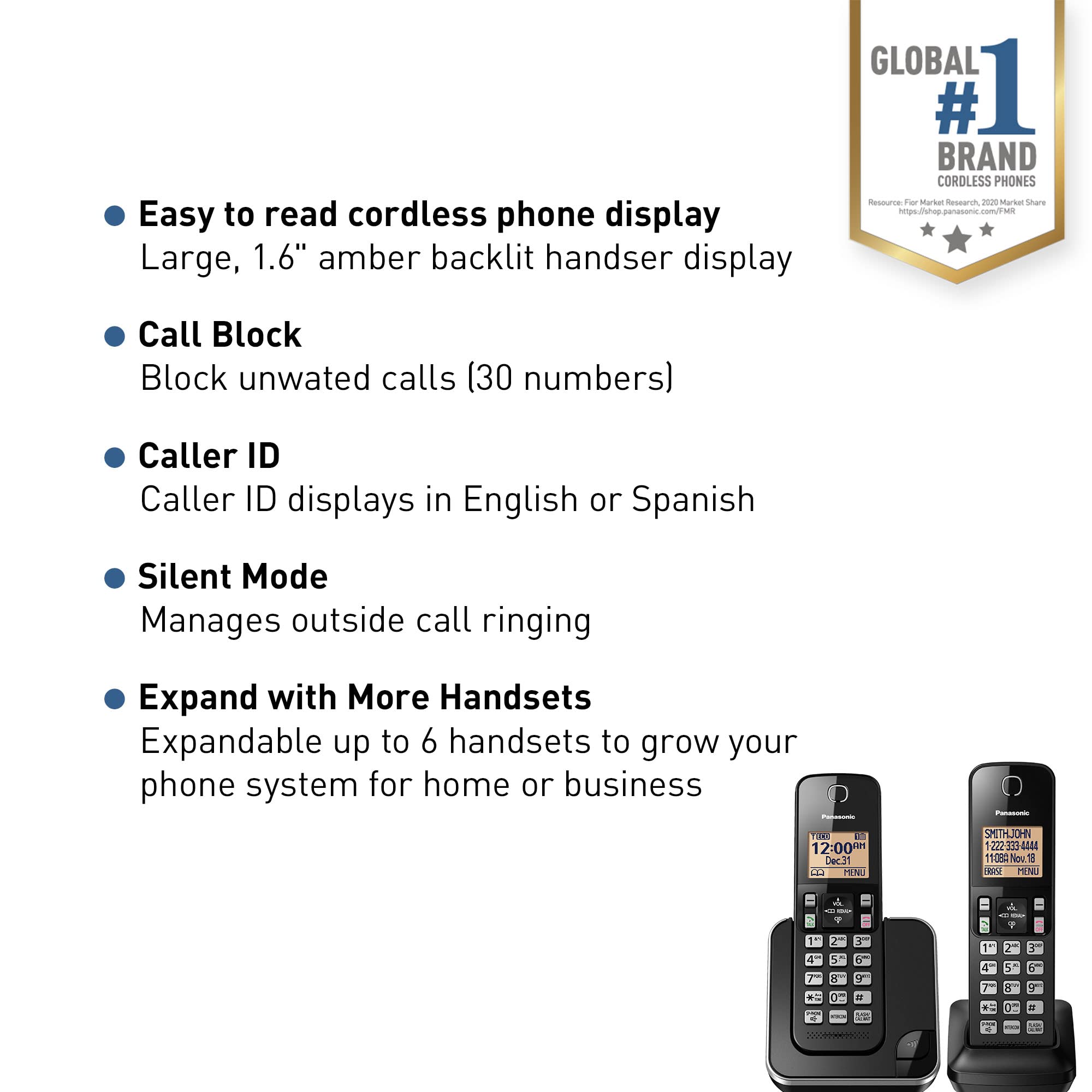 Details: The Panasonic KX TGC352B Expandable Cordless Phone System with Amber Backlit Display and Call Block works great in any home or home office. Includes one cordless handset in the phone’s base unit and one additional cordless handset, expandable up to six handsets. If you're tired of getting interruptions from telemarketers or robot callers, this phone system has call block capability. With a Caller ID Service, the blocked number will be registered in the phone system’s database. Additional features include: Dect 6.0 technology, speed dial, call waiting and caller ID capability as well as call grouping on telephone's base unit and cordless handsets. This landline cordless phone comes equipped with many great features for the perfect home phone system. Guided feature tutorials are available for this cordless phone system on the manufacturers. Dect 6.0 is a North American marketing term for dect devices manufactured for the United States and Canada operating at 1. 9 GHz.