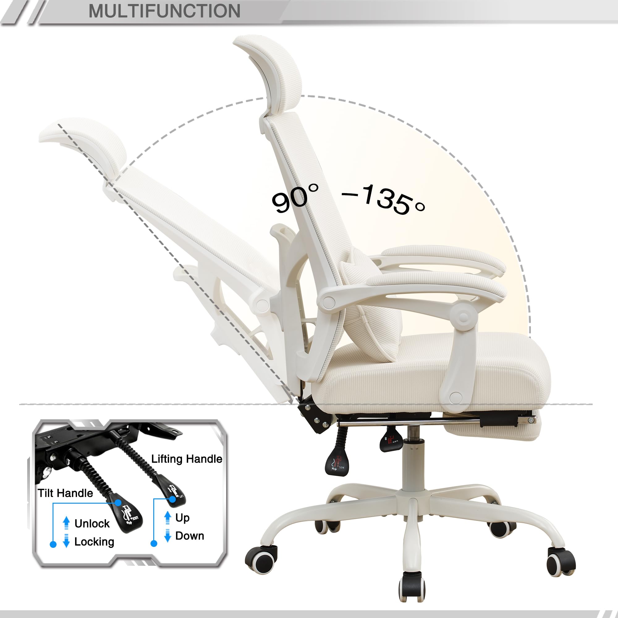 Ergonomic Office Chair - Adjustable Desk Chair with Lumbar Support | Thick Seat Cushion, Head, and Arm Rests - Reclines