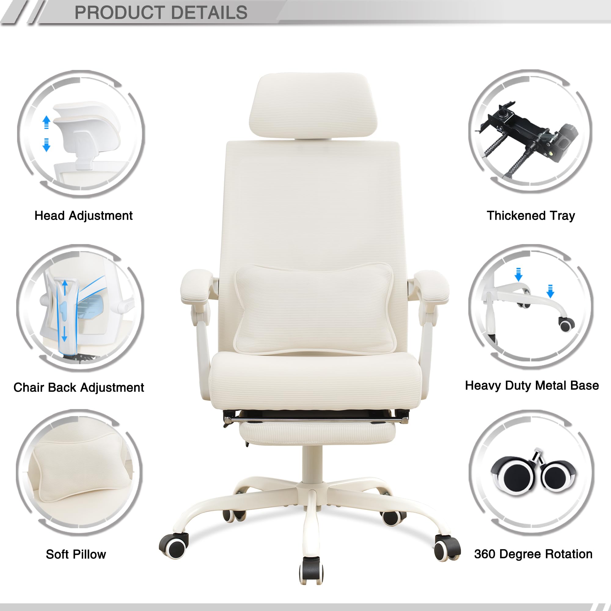 Adjustable Desk Chair with Lumbar Support and Rollerblade Wheels - High Back Chairs with Breathable Mesh